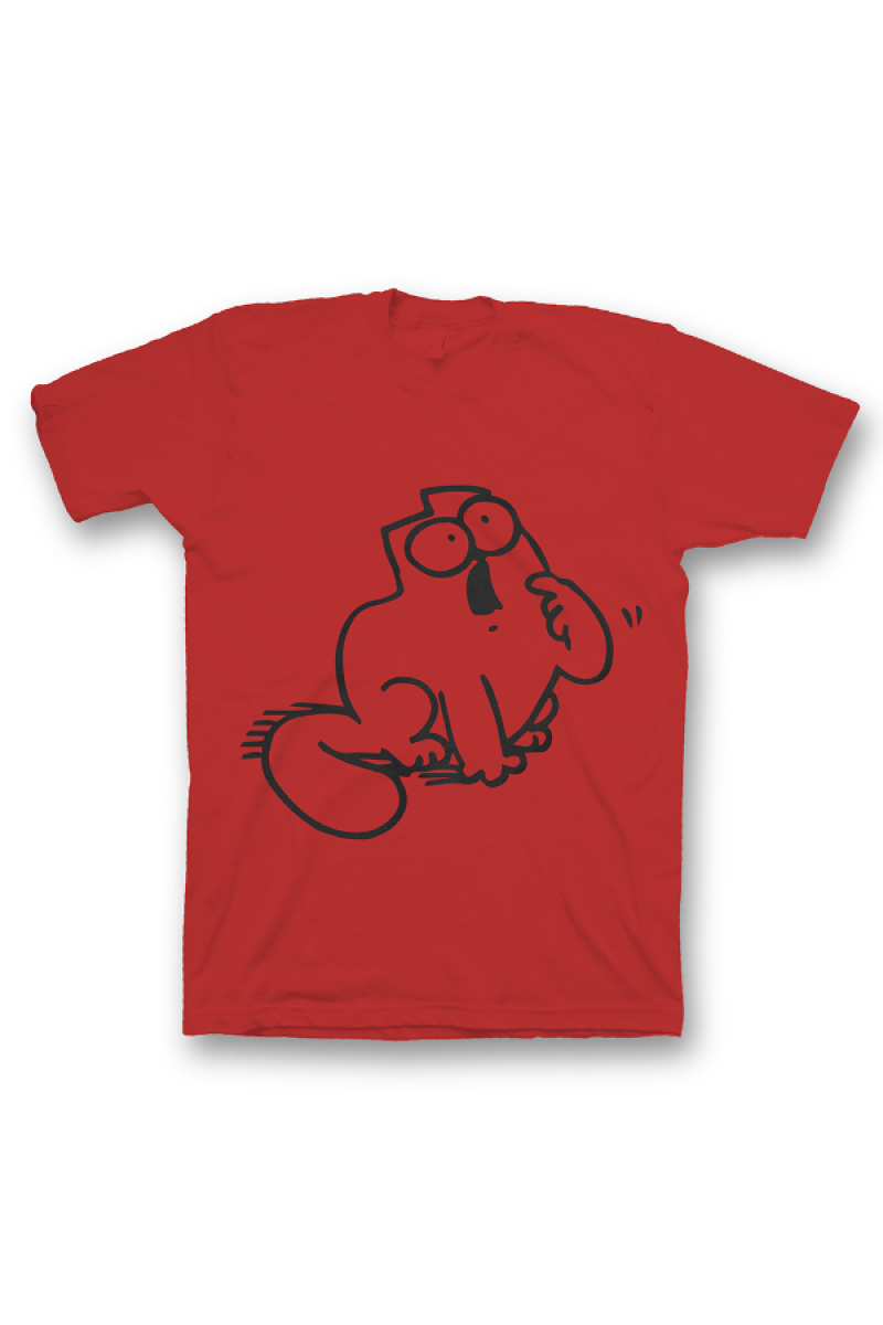 Прикольная футболка с принтом на котором изображен кот из мультка "Sinon's cat", просящий покушать.