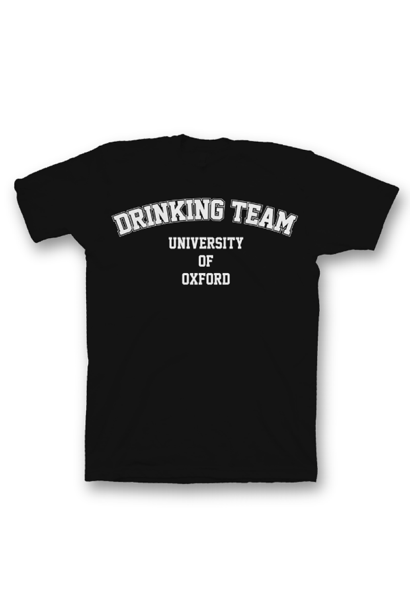 Прикольная футболка с надписью "University Of Oxford DRINKING TEAM" в стилистике эксклюзивной одежды американских университетов.