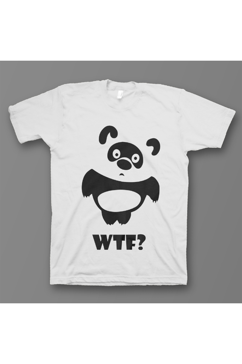 Прикольная футболка с принтом "WTF" - "Какого черта?". Помимо надписи на принте есть изображение удивленного Винни-Пуха.