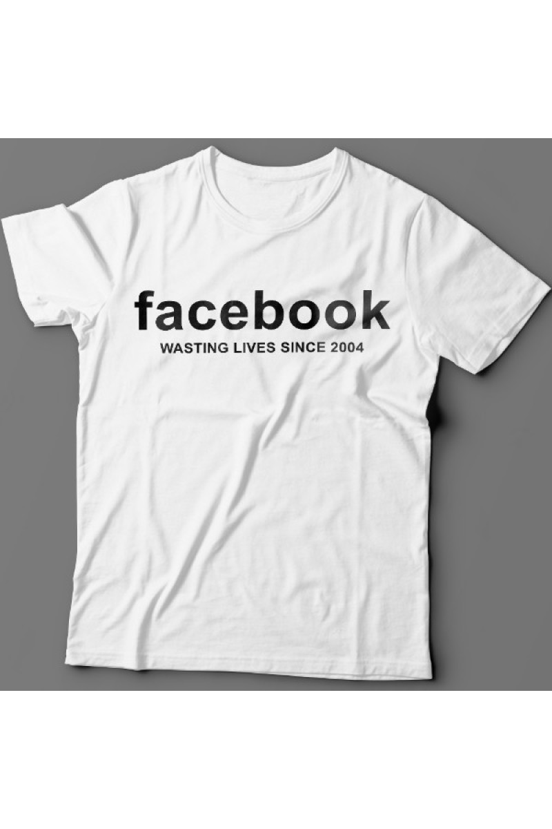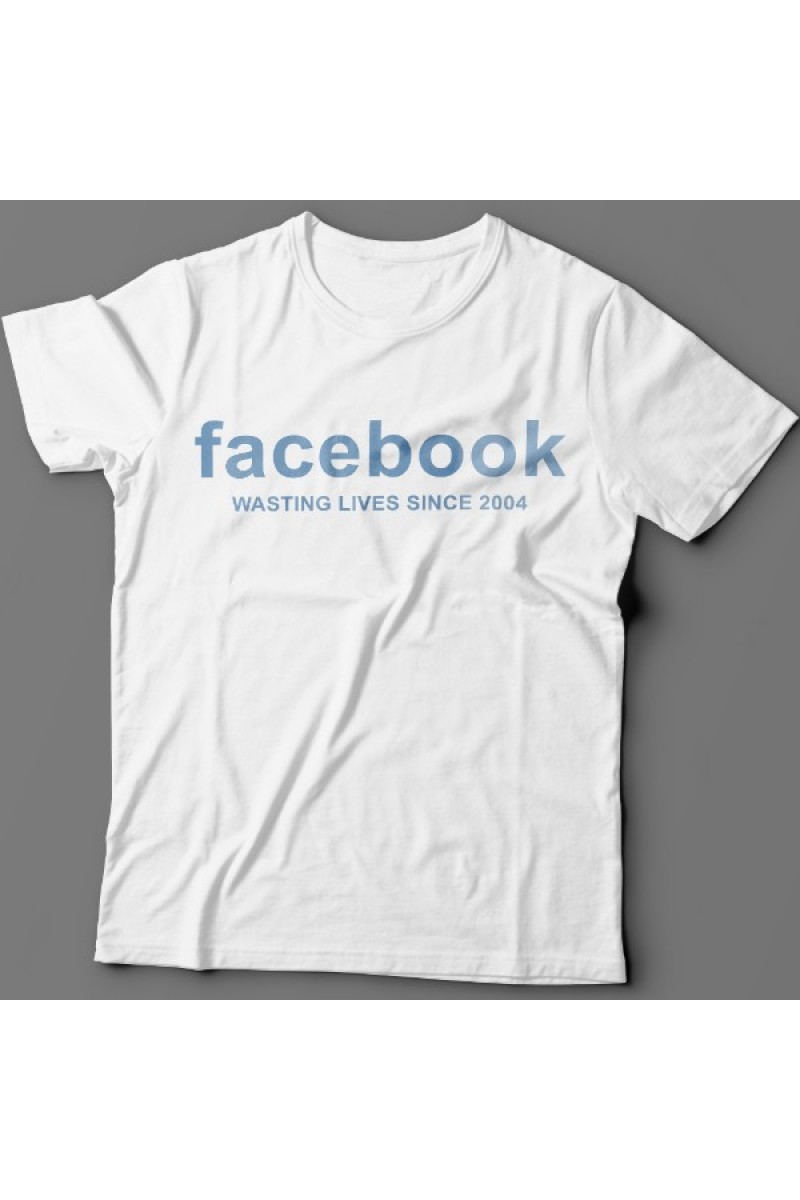 Прикольная футболка с надписью "Facebook wasting lives since 2004"