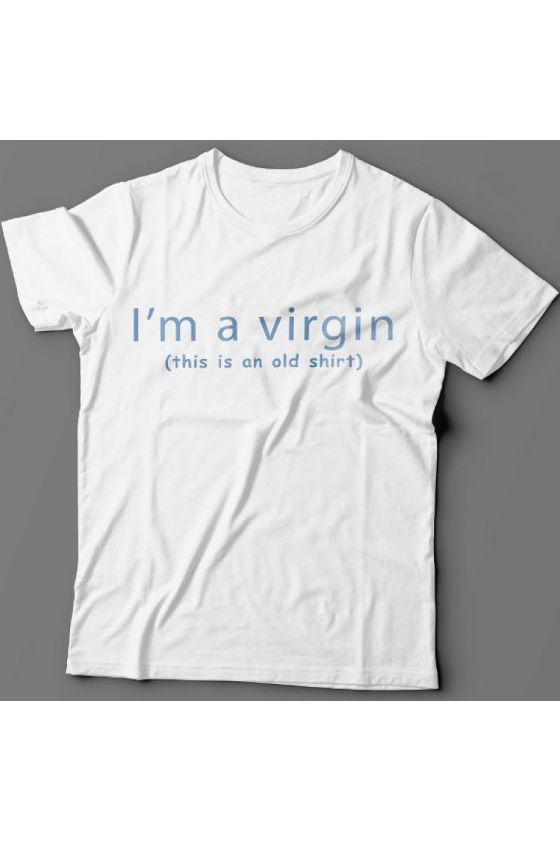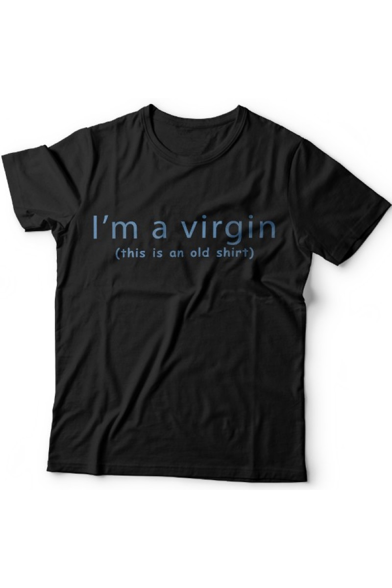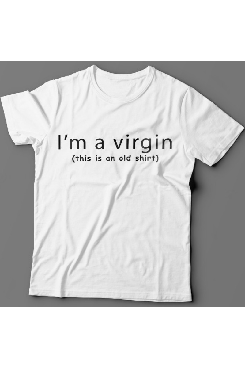 Смешная футболка с надписью "I'm a virgin (this is old t-shirt)" - Я девственник\ца (это старая футболка).