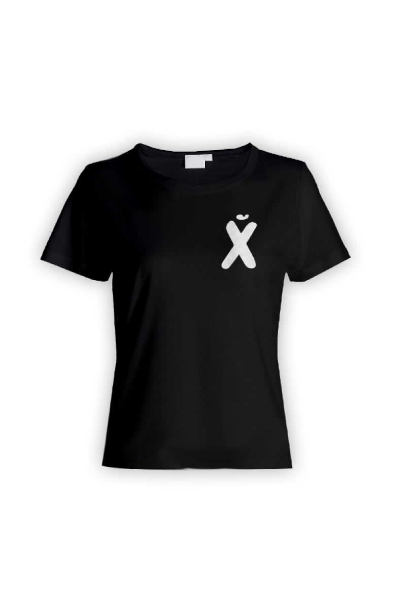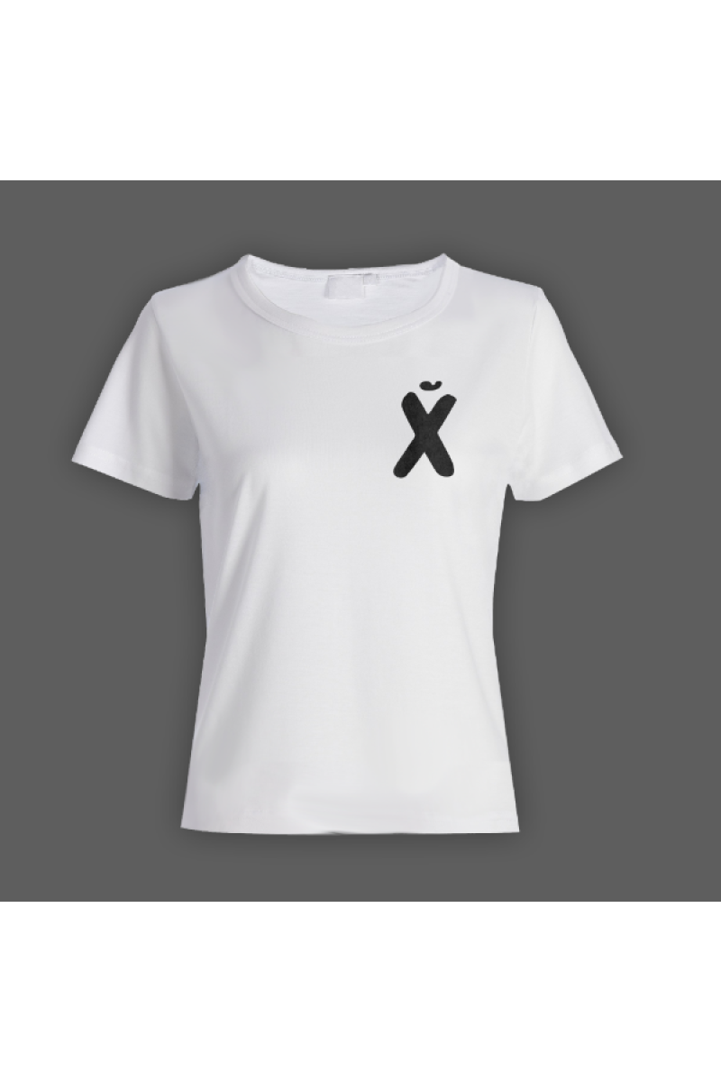 Прикольная футболка с маленьким принтом "буква Х*Й".