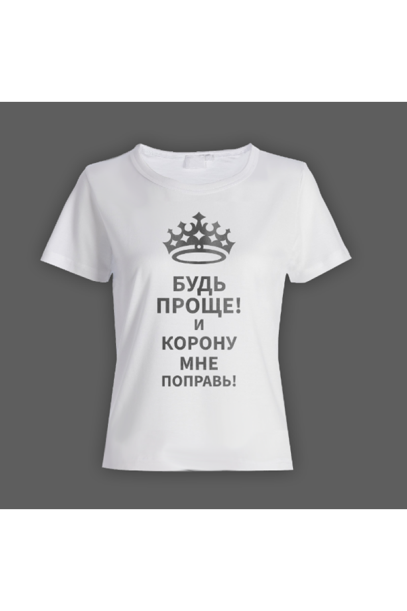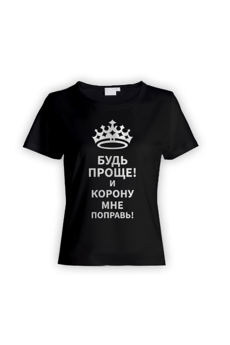 Прикольная футболка с надписью "Будь проще! и корону мне поправь".