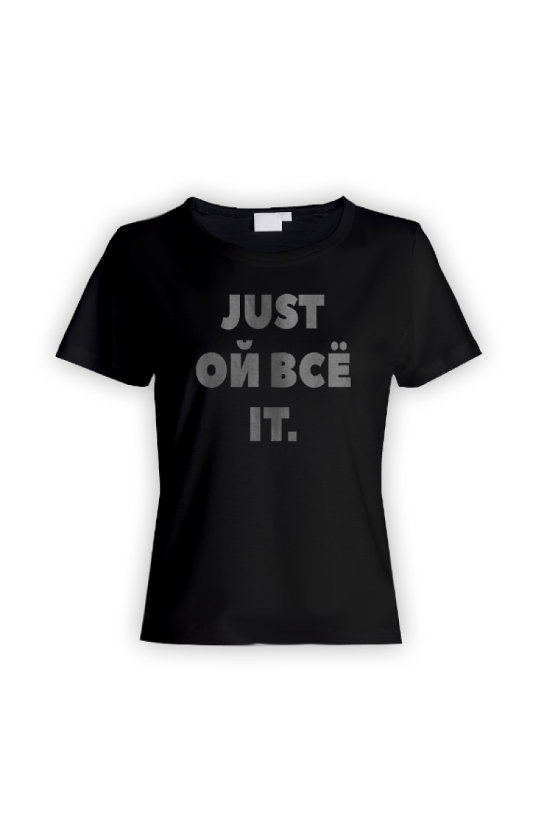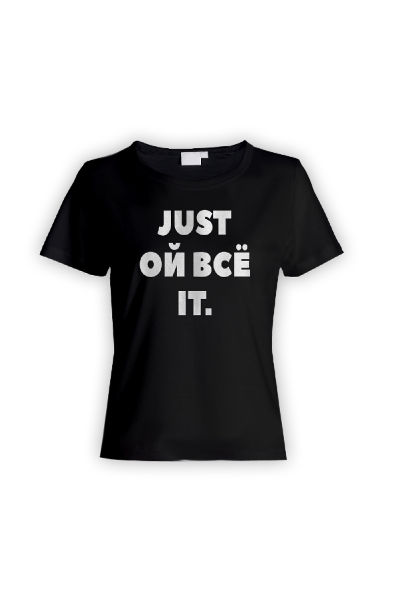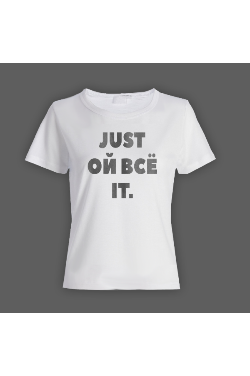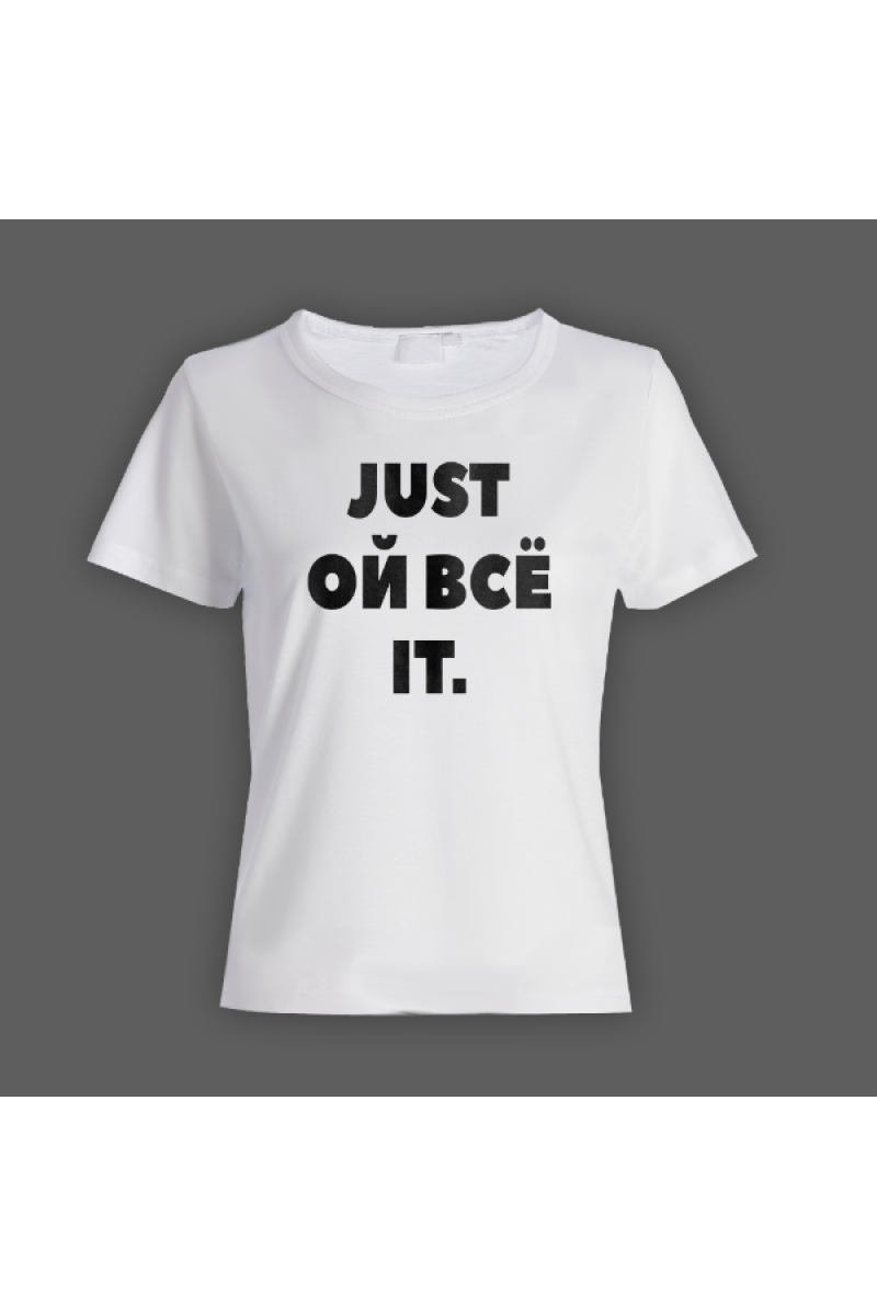 Прикольная футболка с принтом "Just ой всё it" - отсылка к слогану фирмы Nike "Just do it".