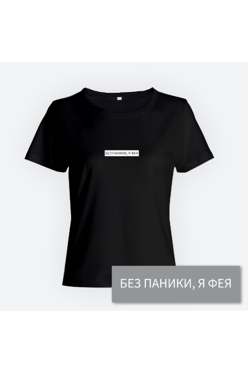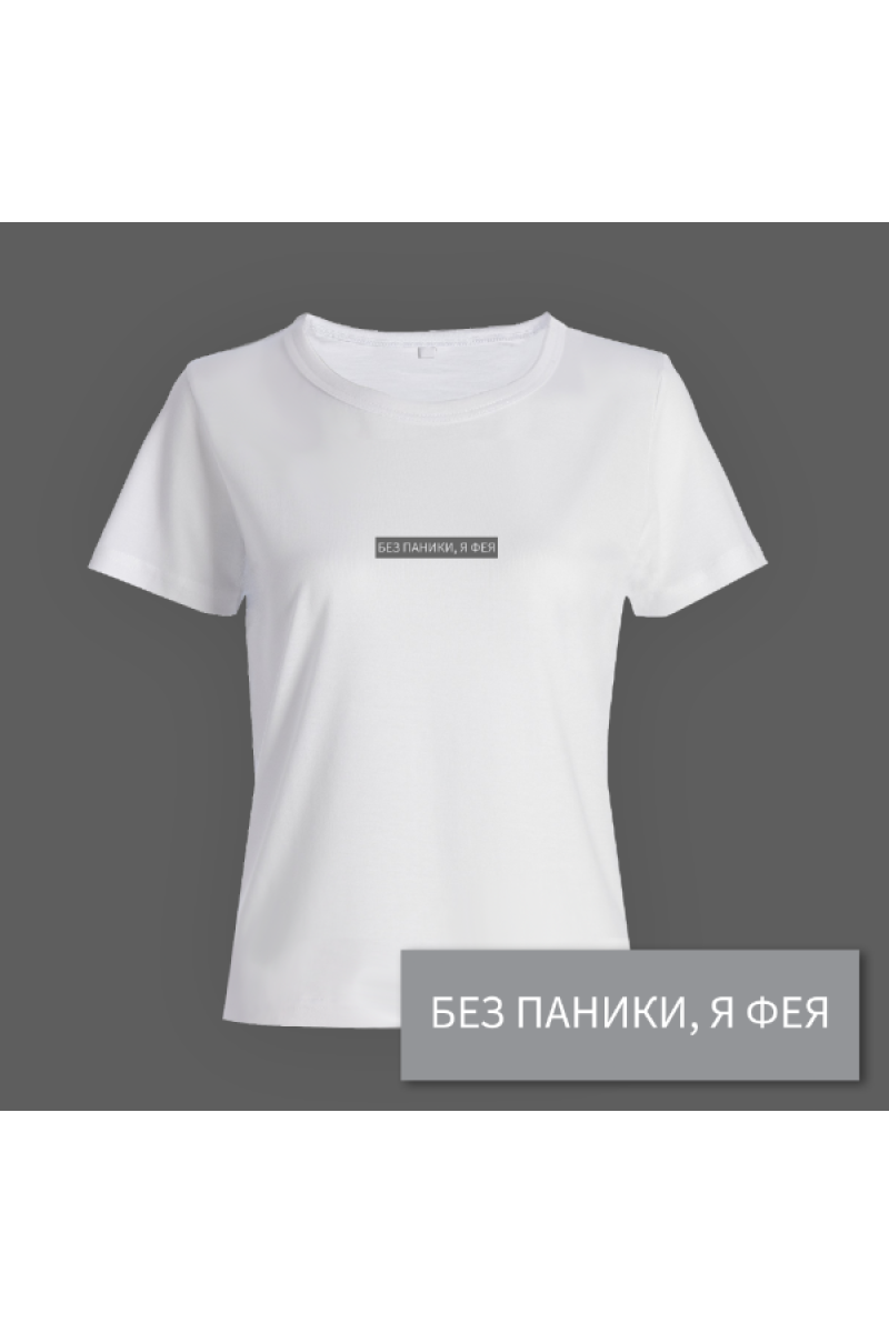 Прикольная футболка с принтом "Без паники я фея".