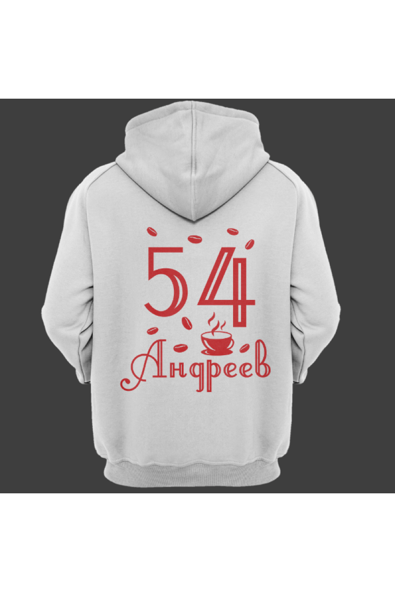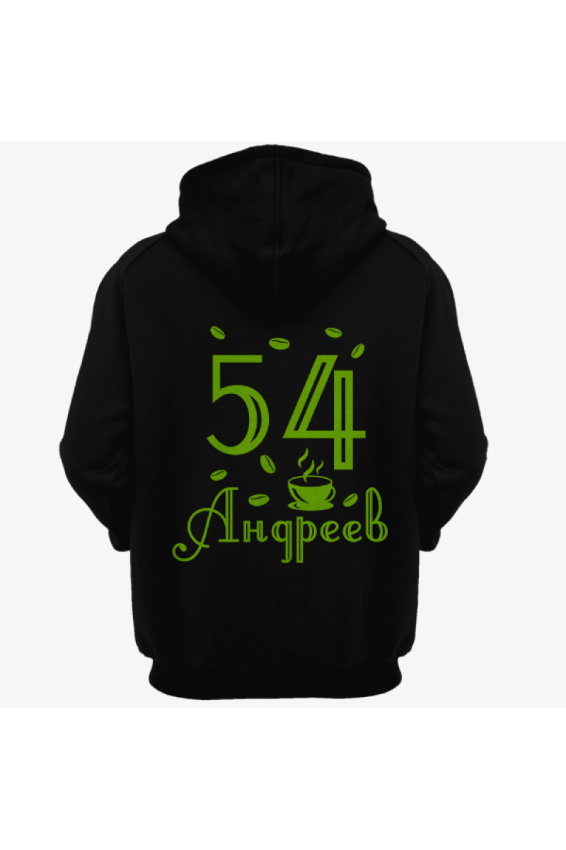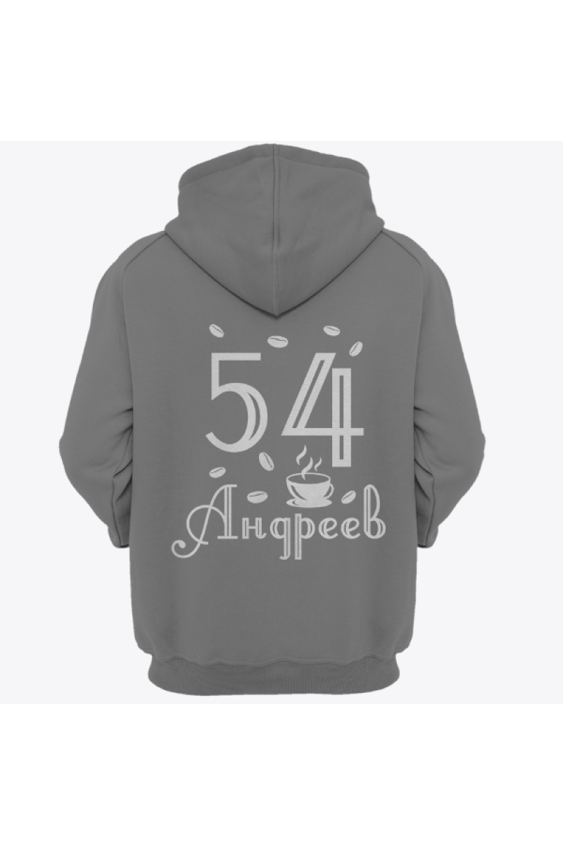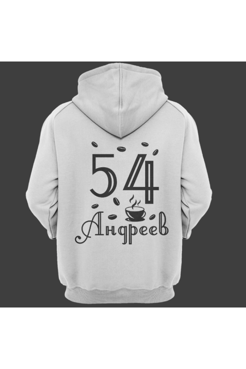 Веселая именная толстовка с интеллигентным шрифтом. Помимо надписи на толстовке есть изображение чашки кофе и кофейных зерен.