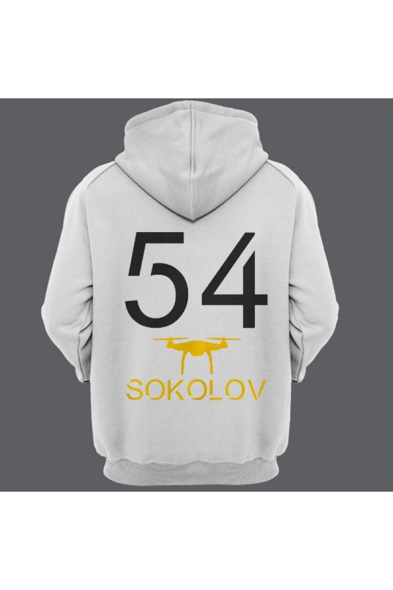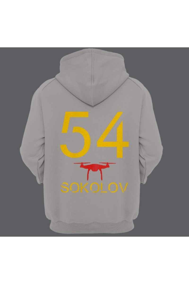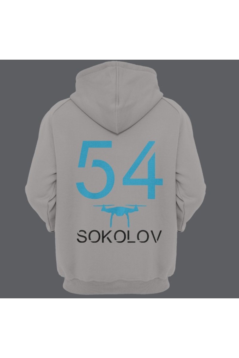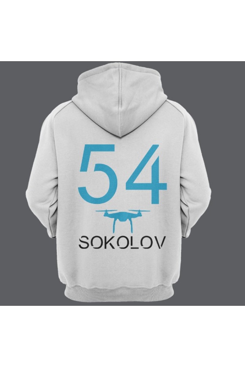 Прикольная именная толстовка с футуристичным шрифтом. Помимо надписи на толстовке есть изображение дрона.