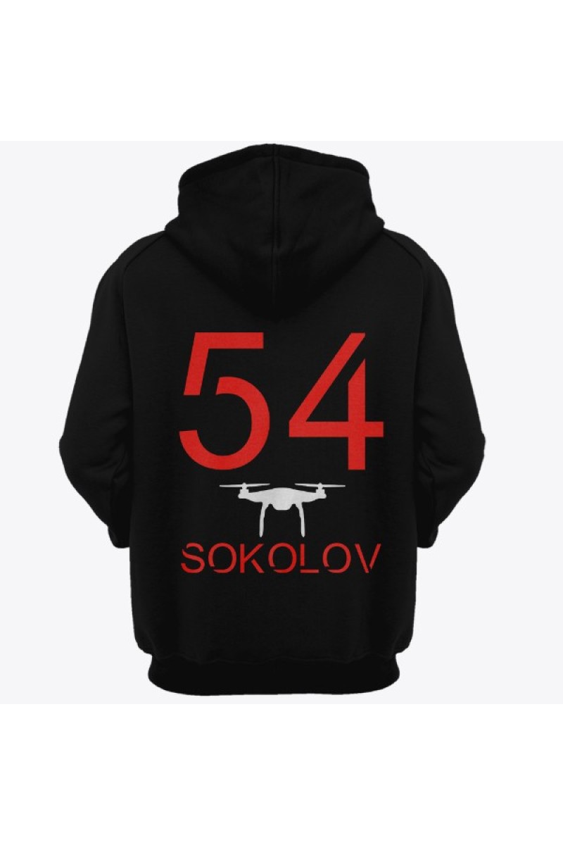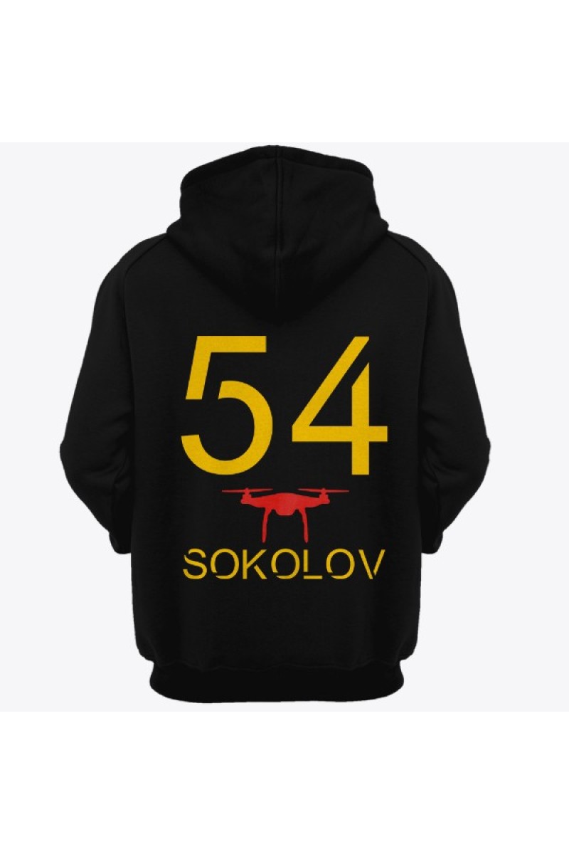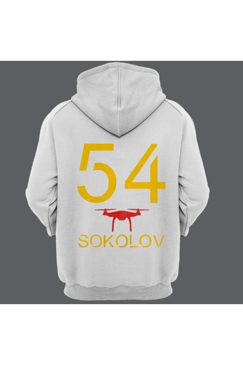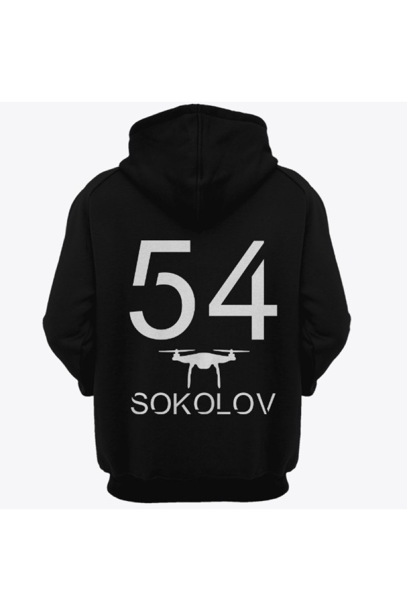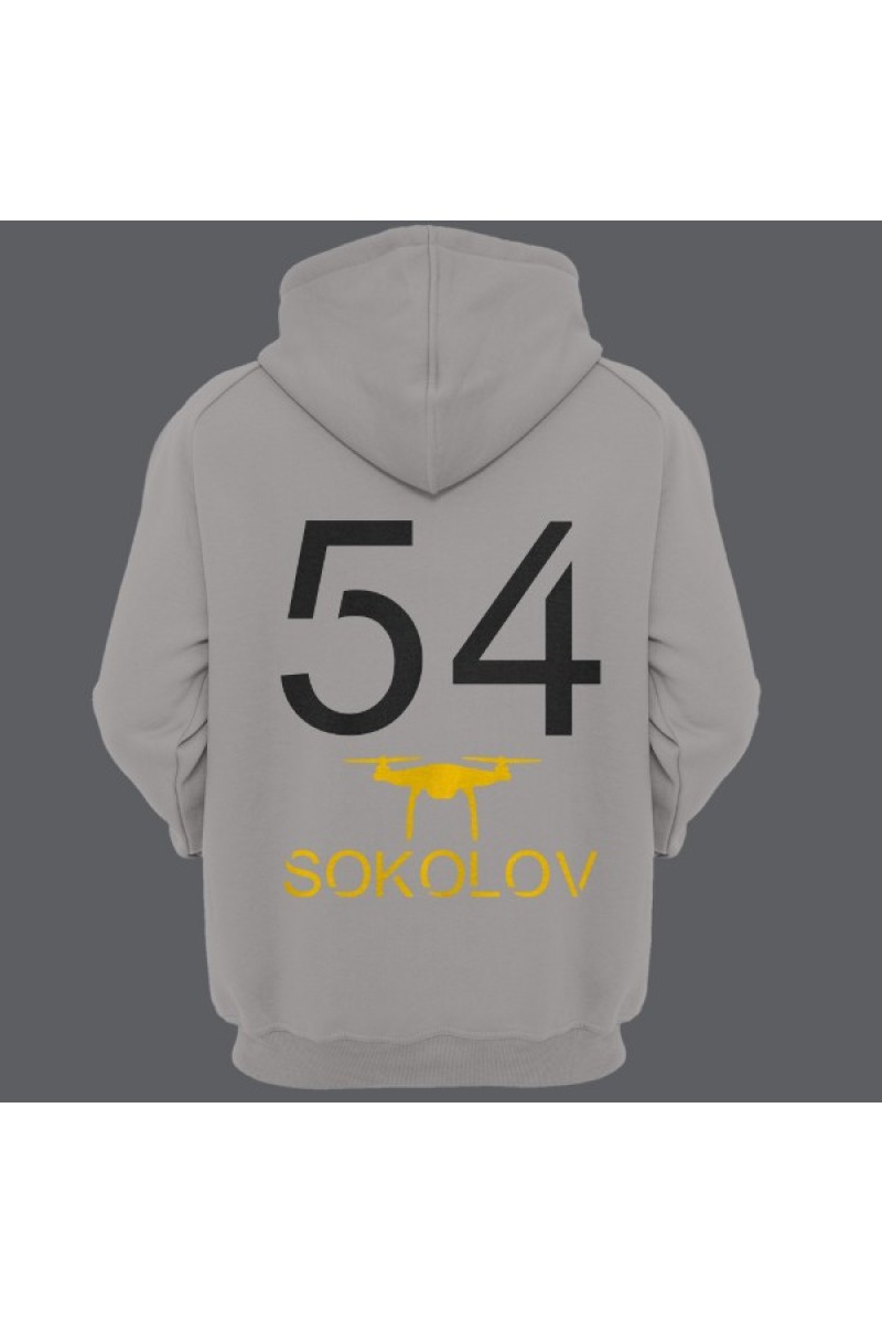 Прикольная именная толстовка с футуристичным шрифтом. Помимо надписи на толстовке есть изображение дрона.