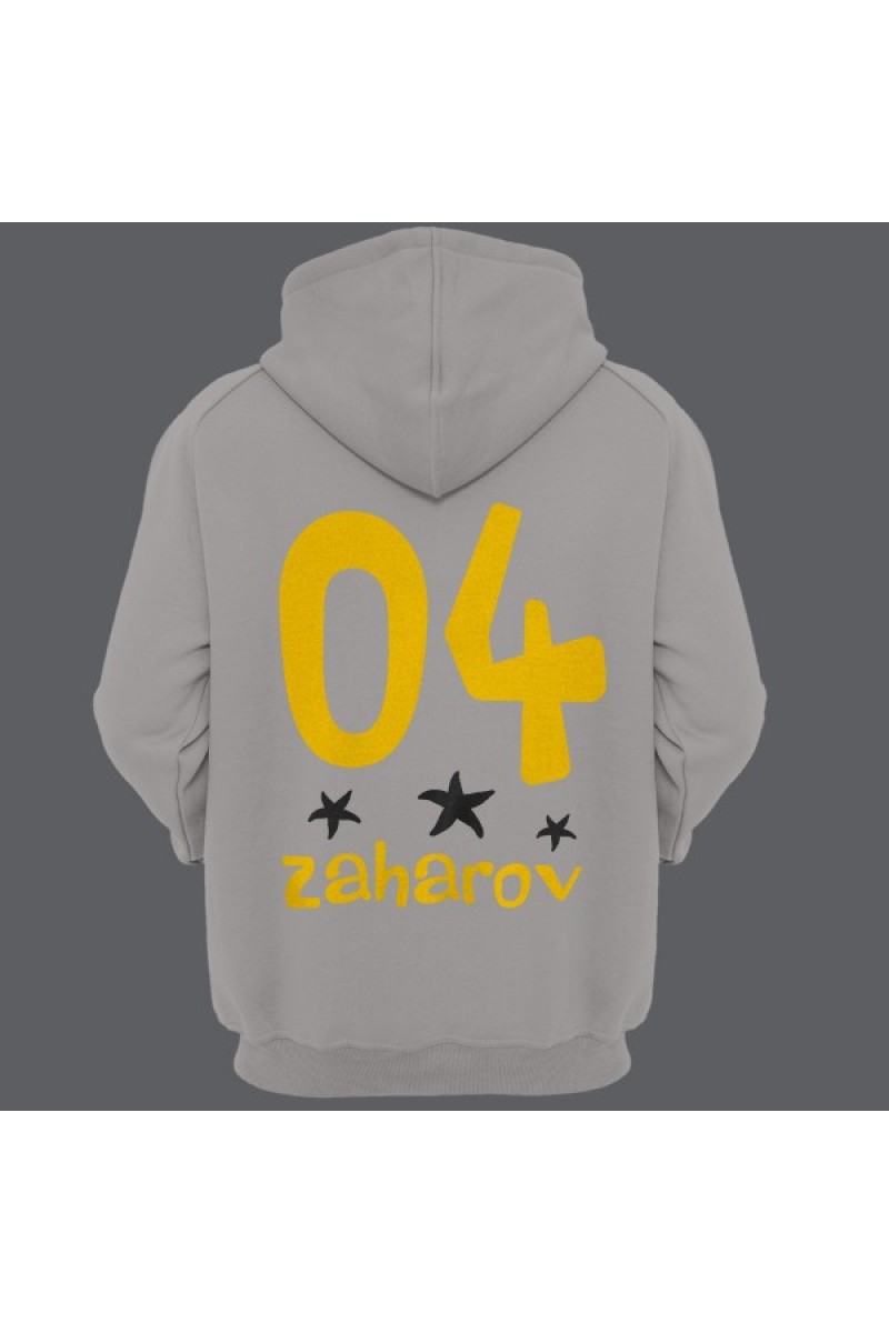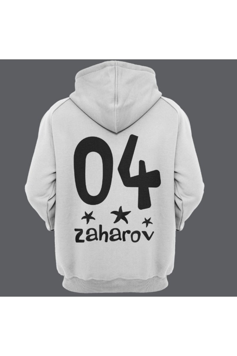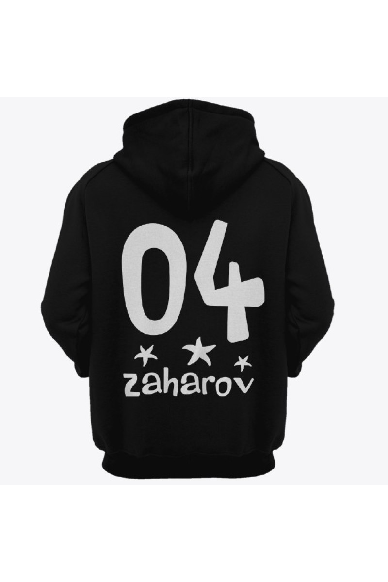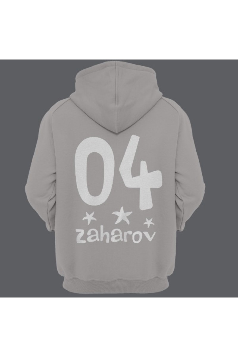 Прикольная именная толстовка с мультяшным шрифтом. Помимо надписи на толстовке есть изображения морских звезд.