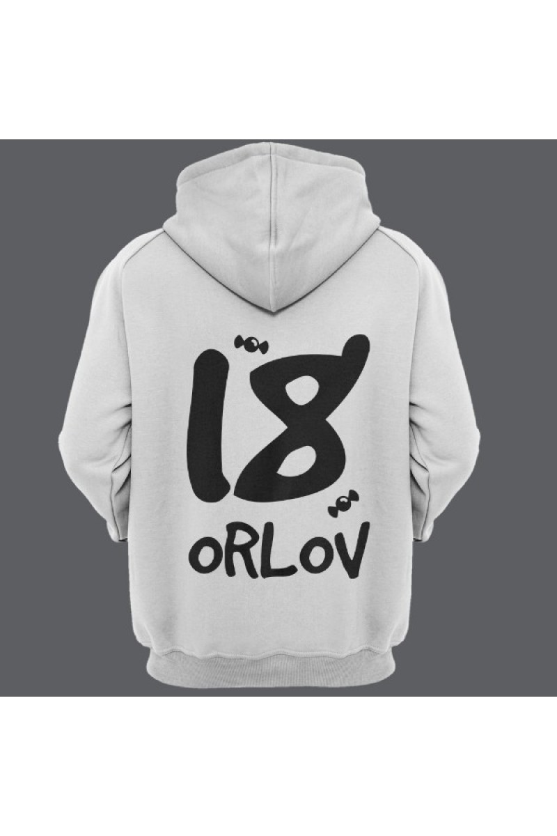 Прикольная именная толстовка с кривым шрифтом. Помимо надписи на толстовке есть изображение конфет.