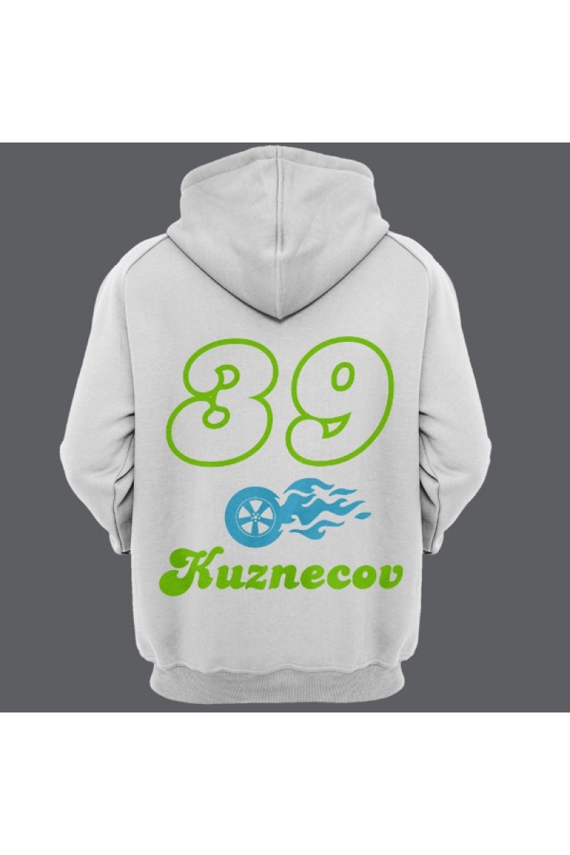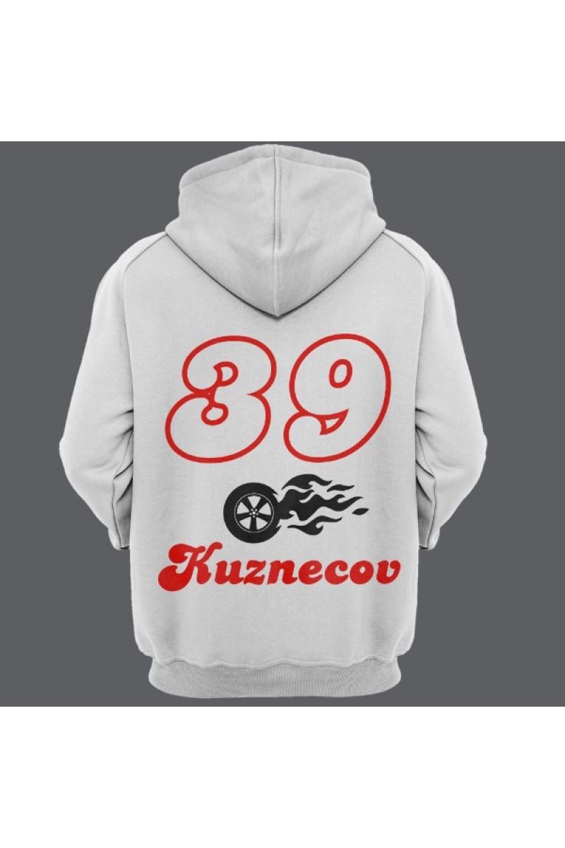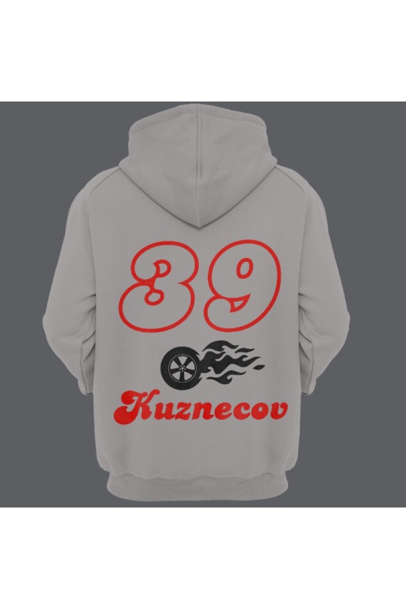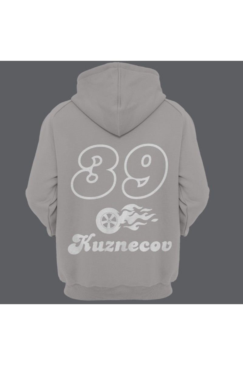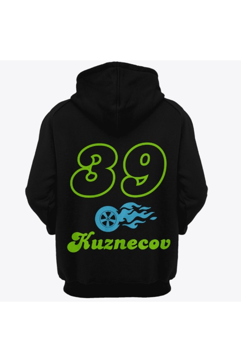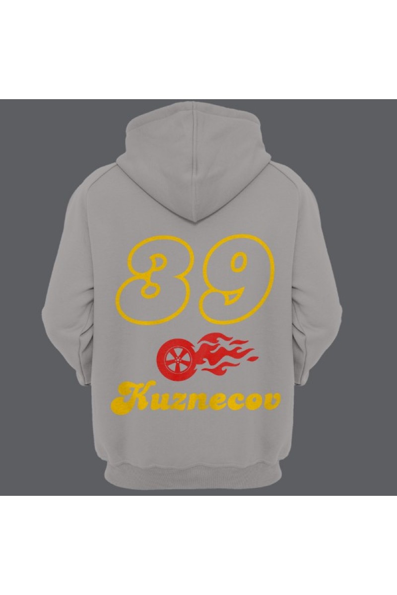 Прикольная именная толстовка с шрифтом из нулевых. Помимо надписи на толстовке есть изображение колеса в огне.