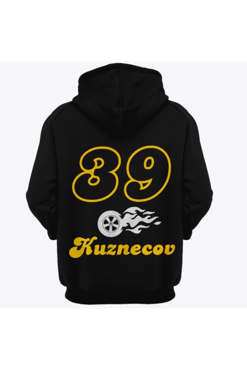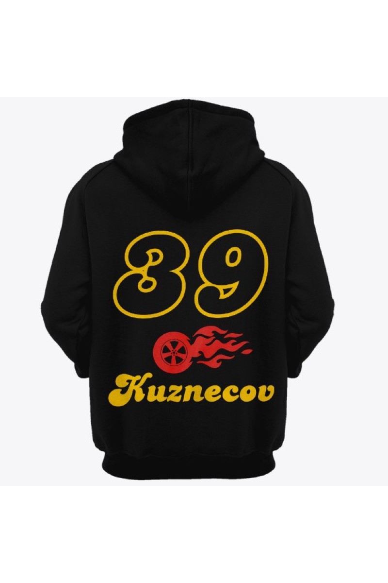 Именная толстовка с шрифтом из нулевых и пламенным колесом #47