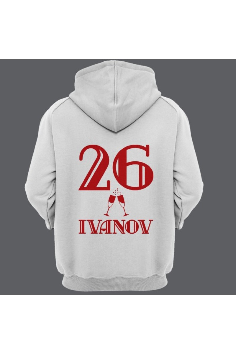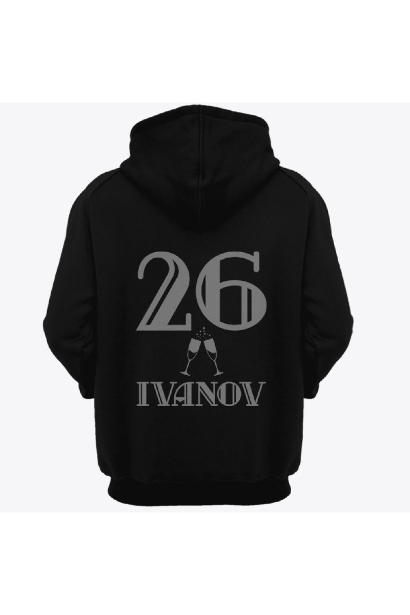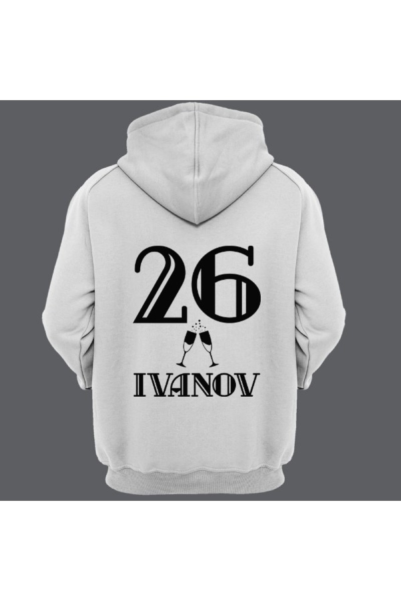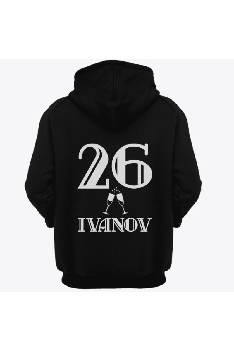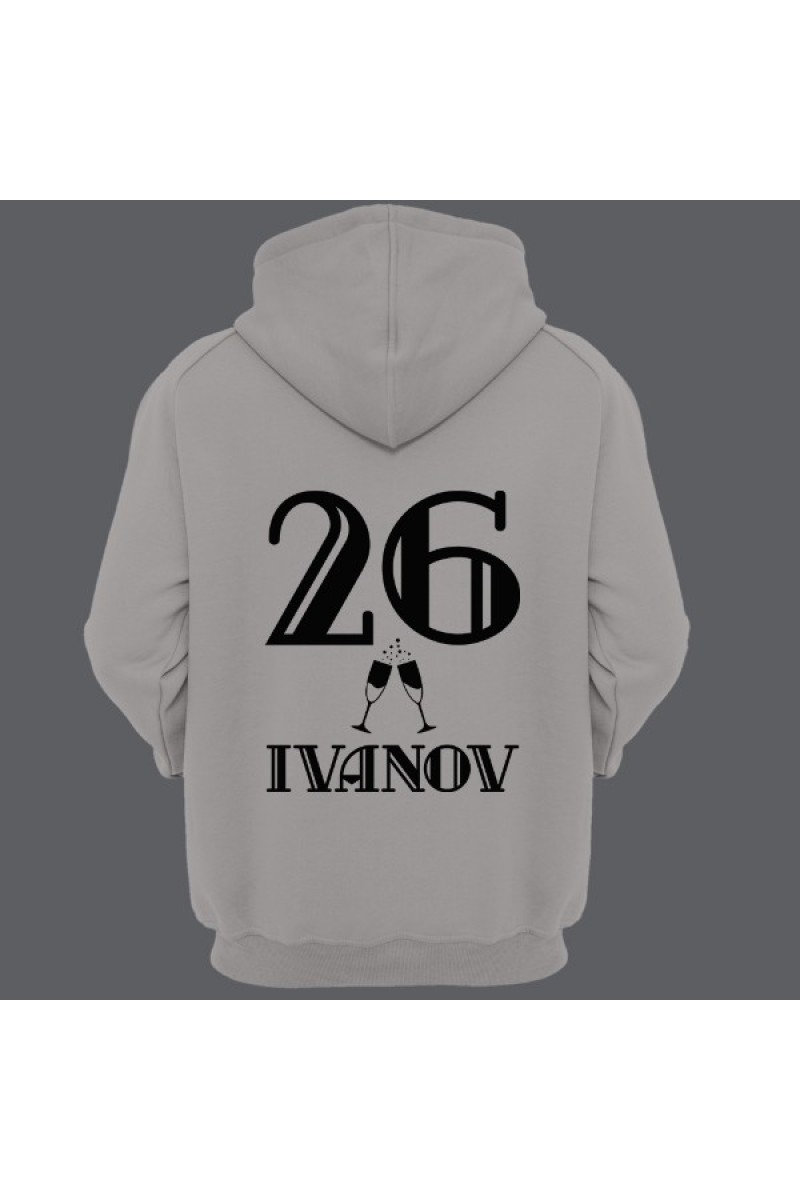 Веселая именная толстовка с винтажным шрифтом. Помимо надписи на толстовке есть изображение бокалов шампанского.