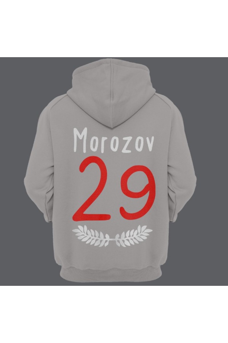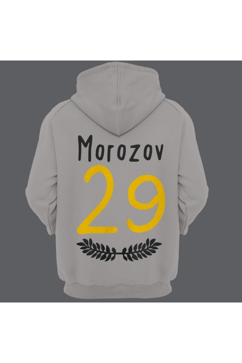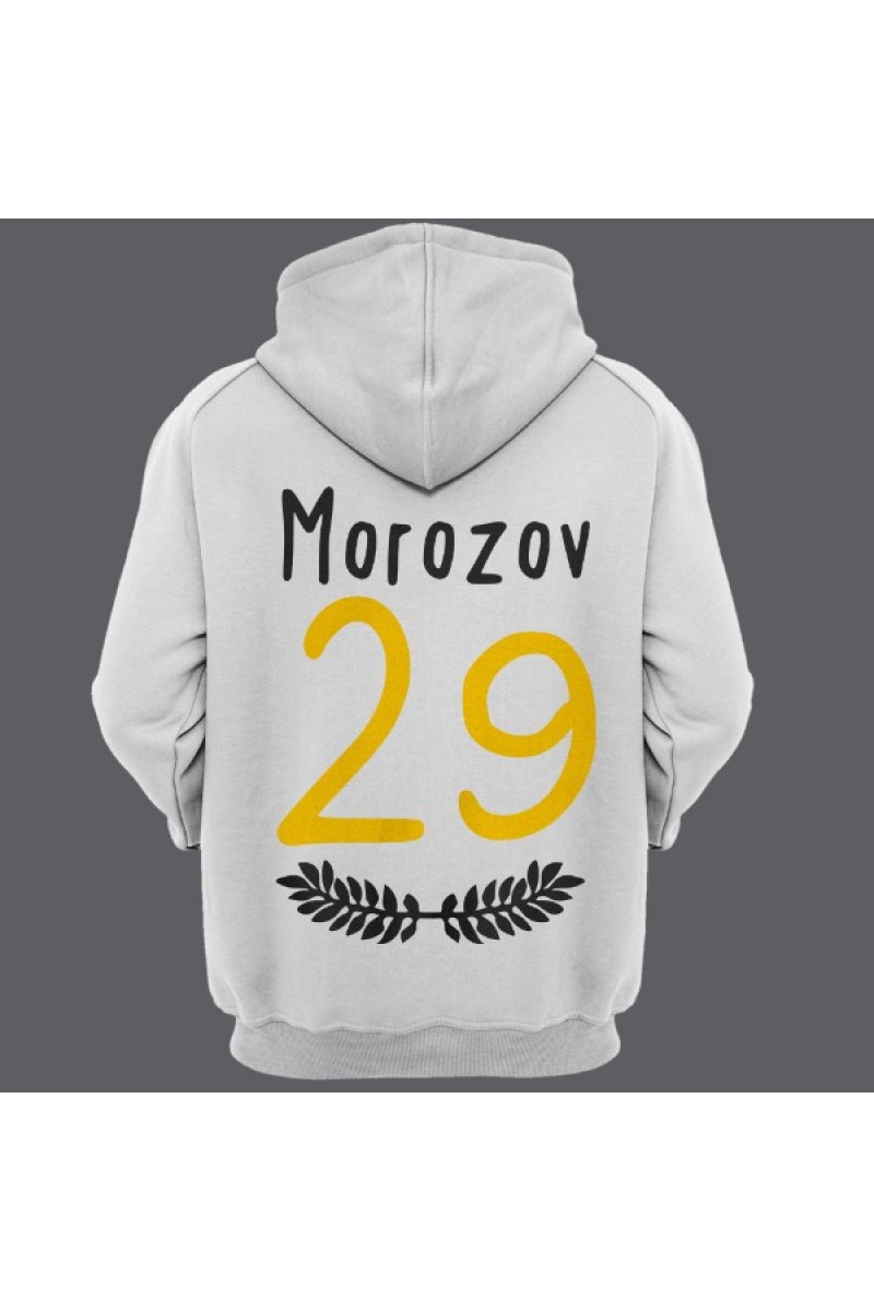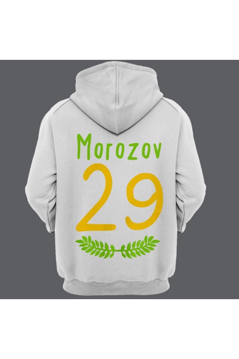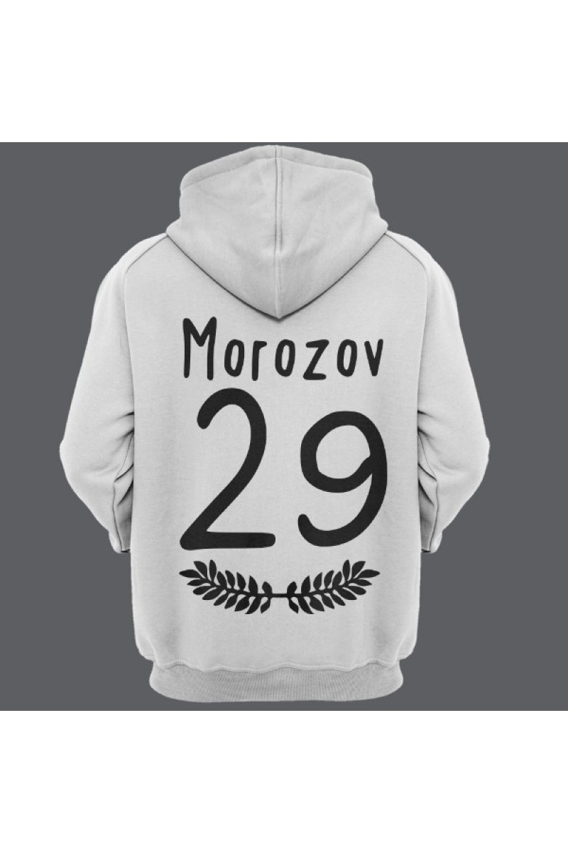 Прикольная именная толстовка с тонким шрифтом. Помимо надписи на толстовке есть изображение веточек с листьями.