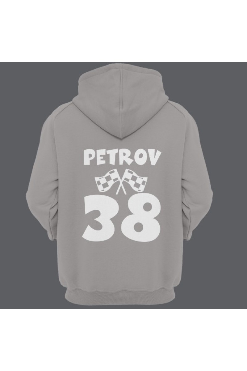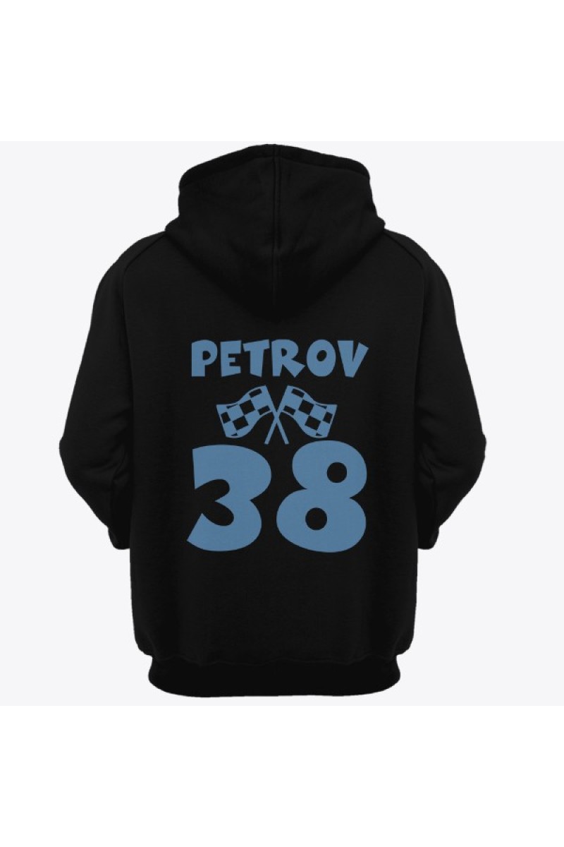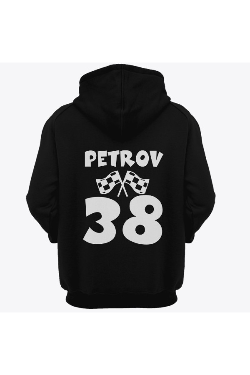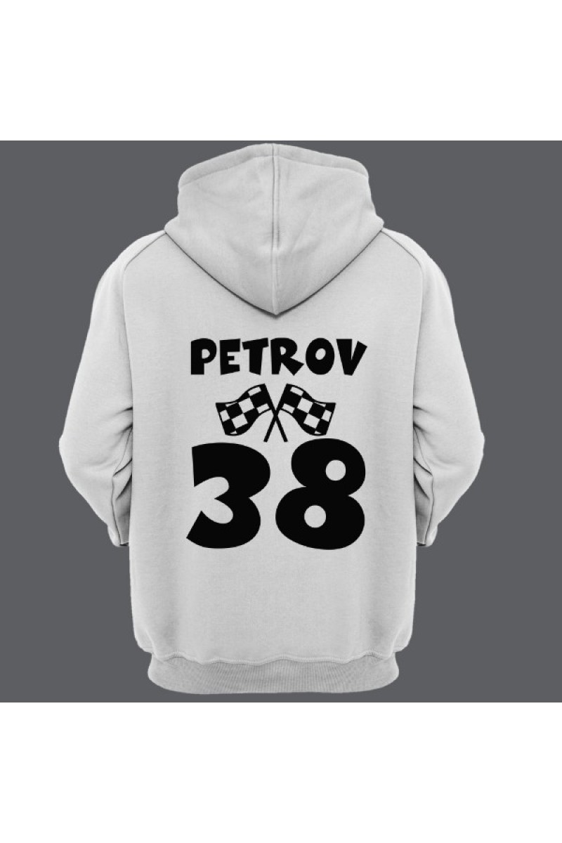 Именная толстовка с веселым шрифтом. Помимо надписи на толстовке есть изображение флагов "на старт".