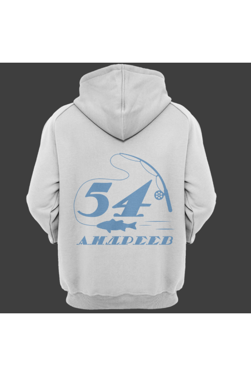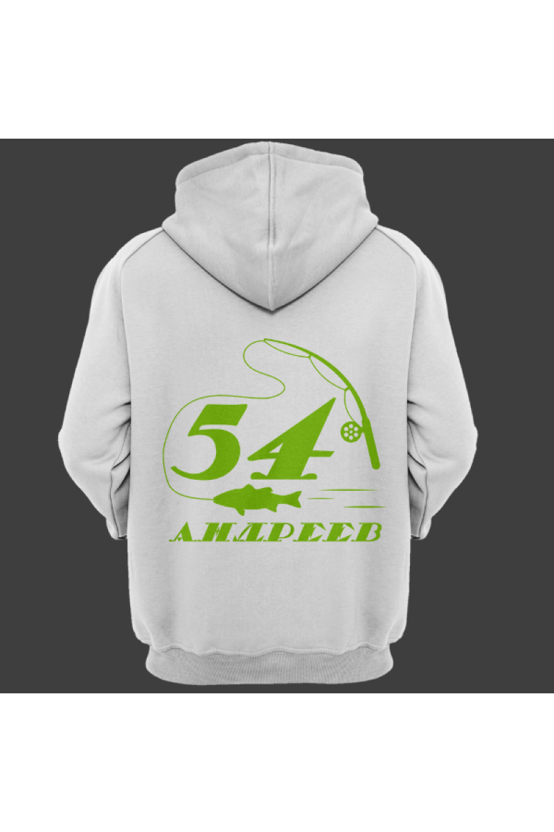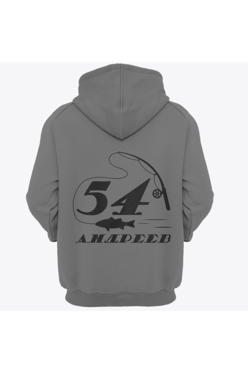 Именная толстовка с печатным шрифтом и атрибутами рыбалки #70