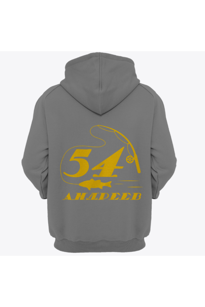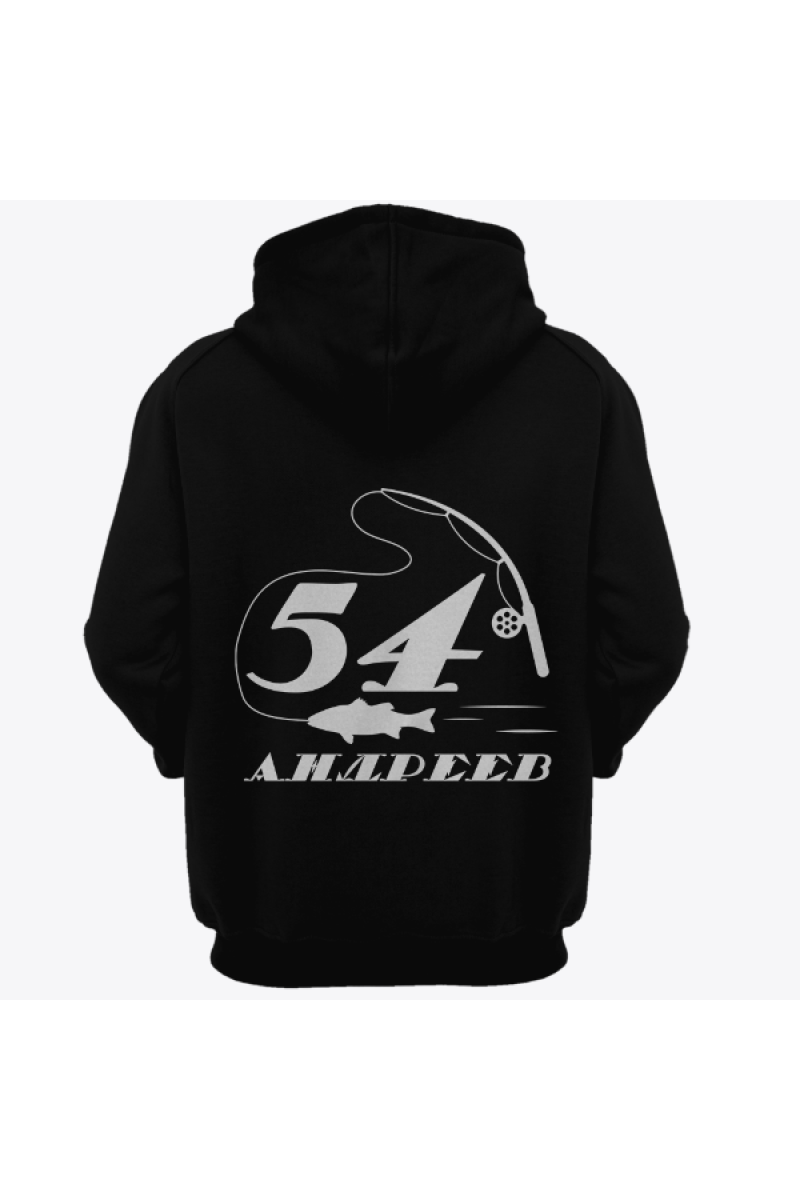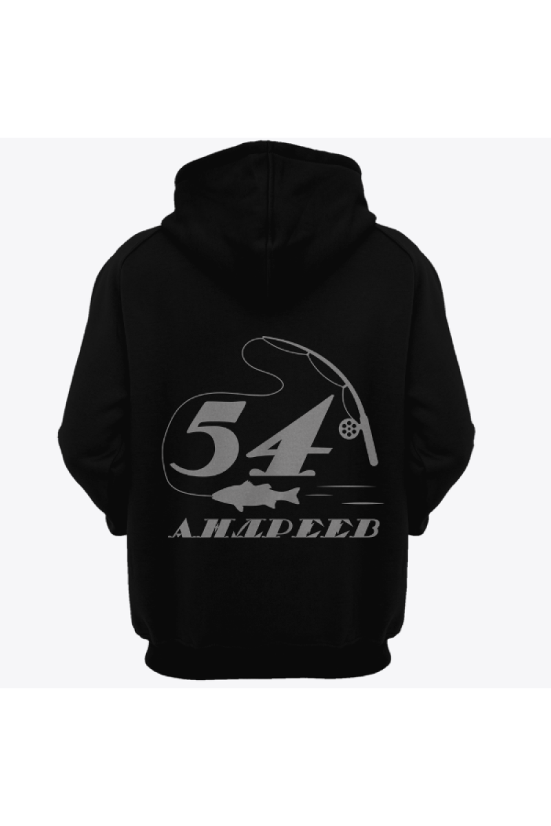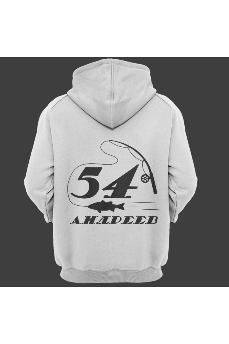 Именная толстовка с печатным шрифтом и атрибутами рыбалки #70