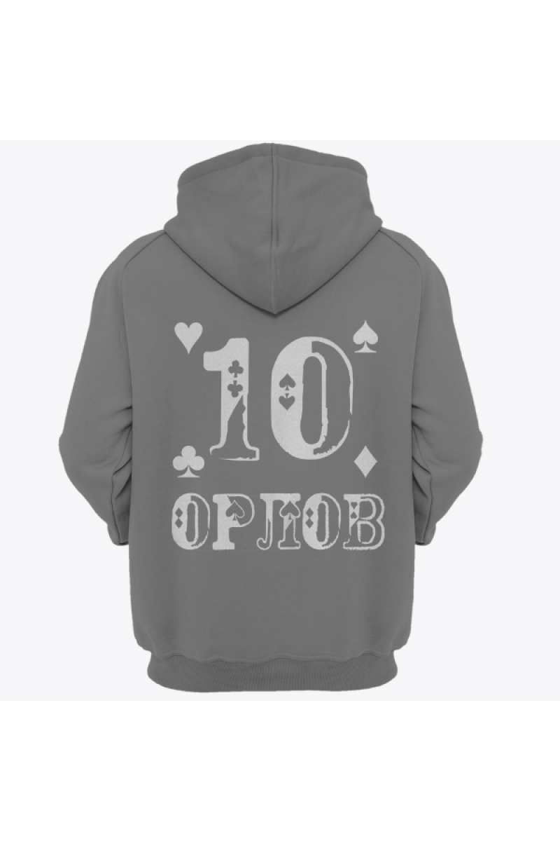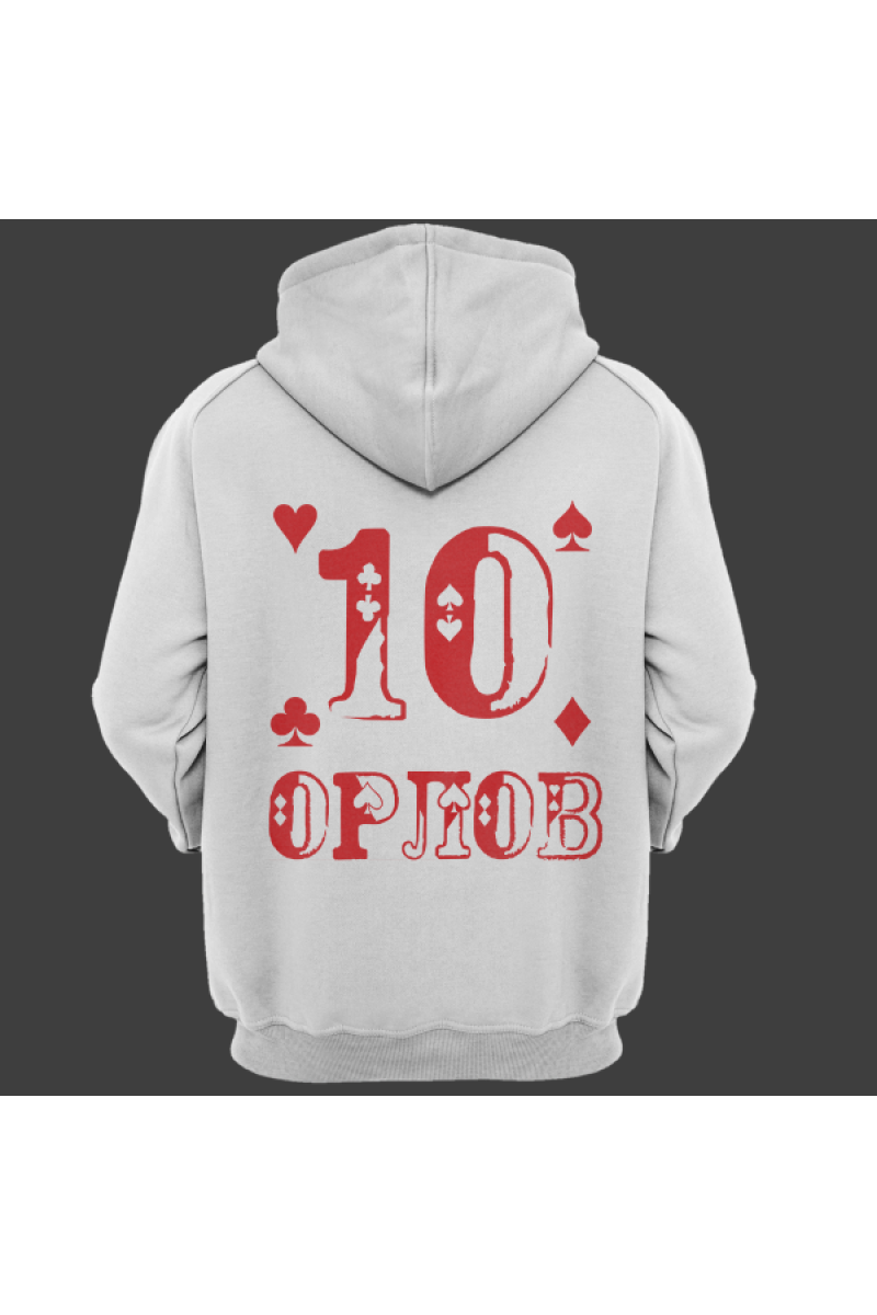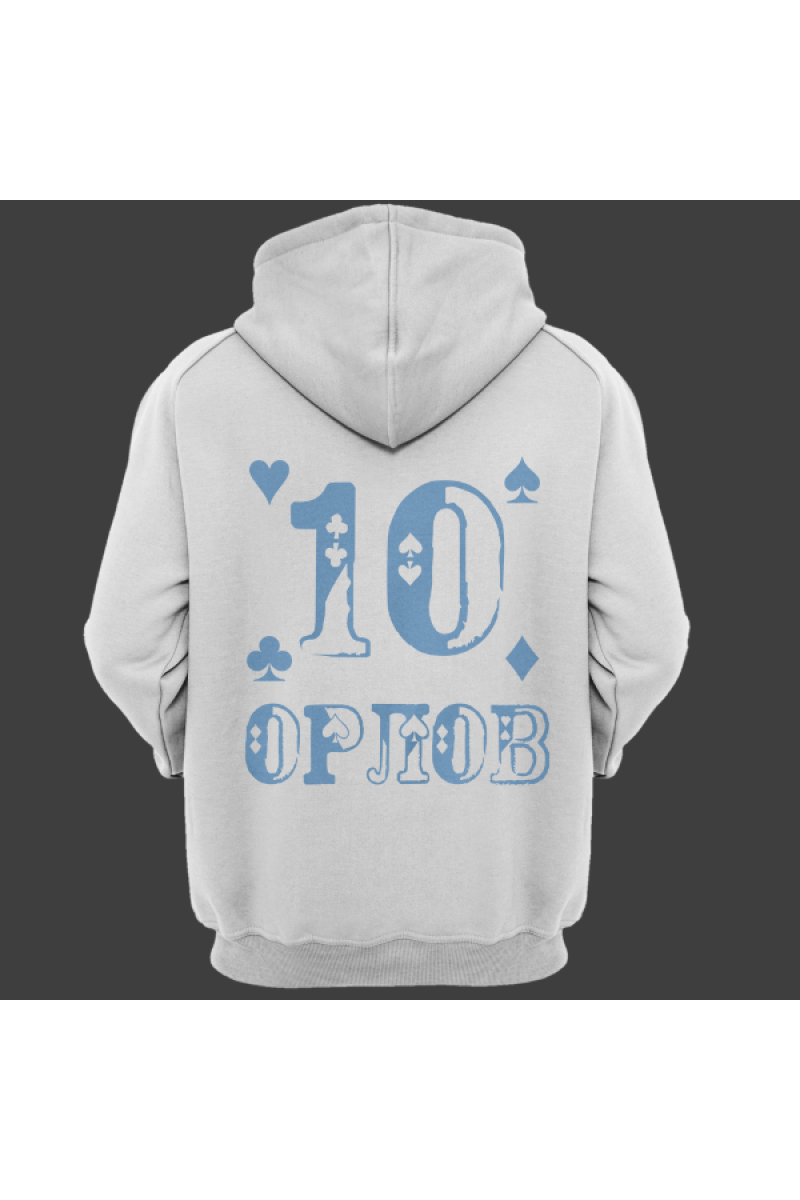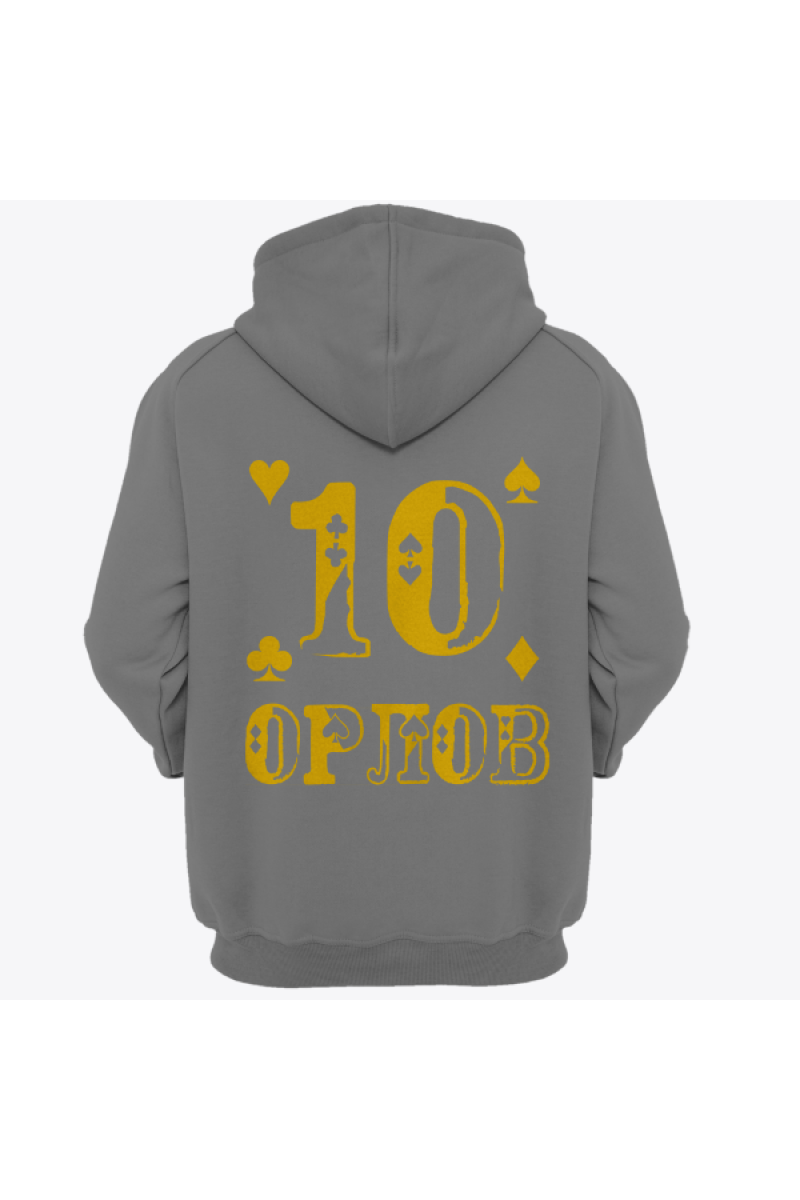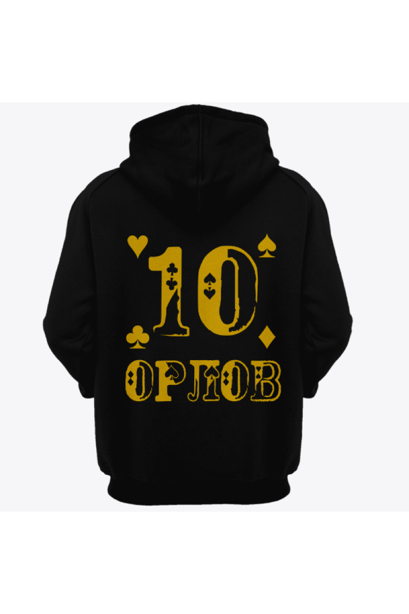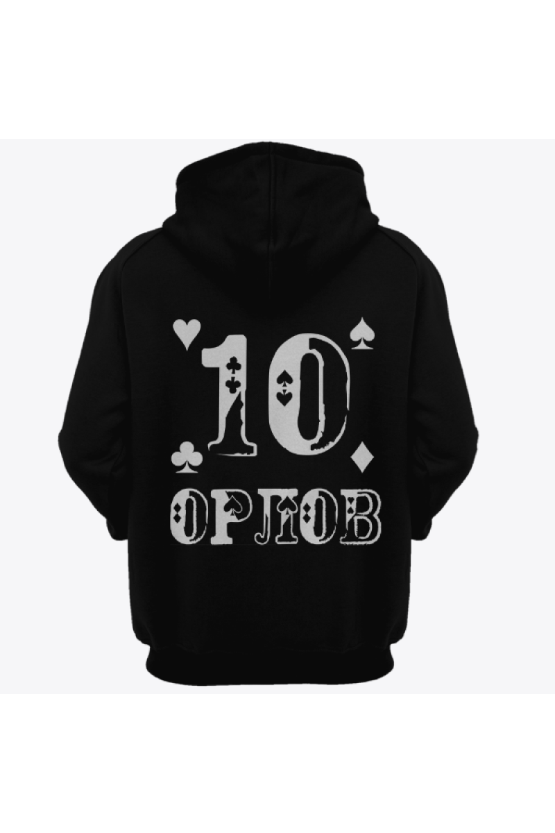 Веселая именная толстовка шрифтом из игральных карт. Помимо надписи на толстовке есть изображение мастей карт.