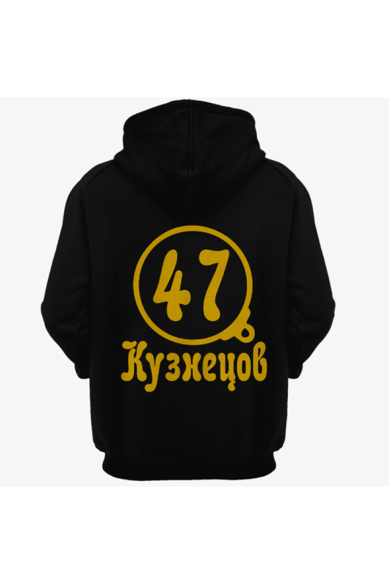 Веселая именная толстовка с театральным шрифтом. Помимо надписи на толстовке есть изображение монокля.