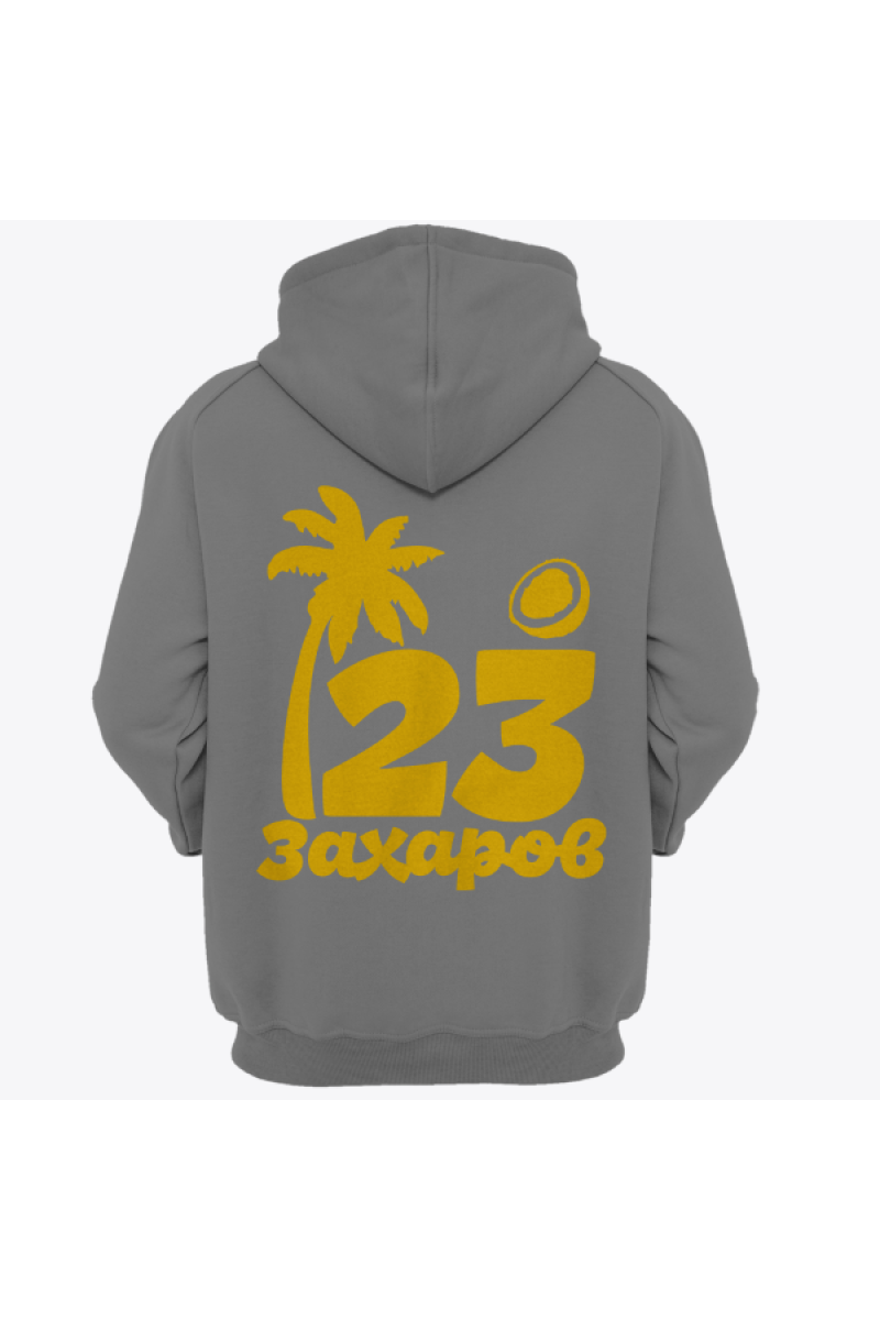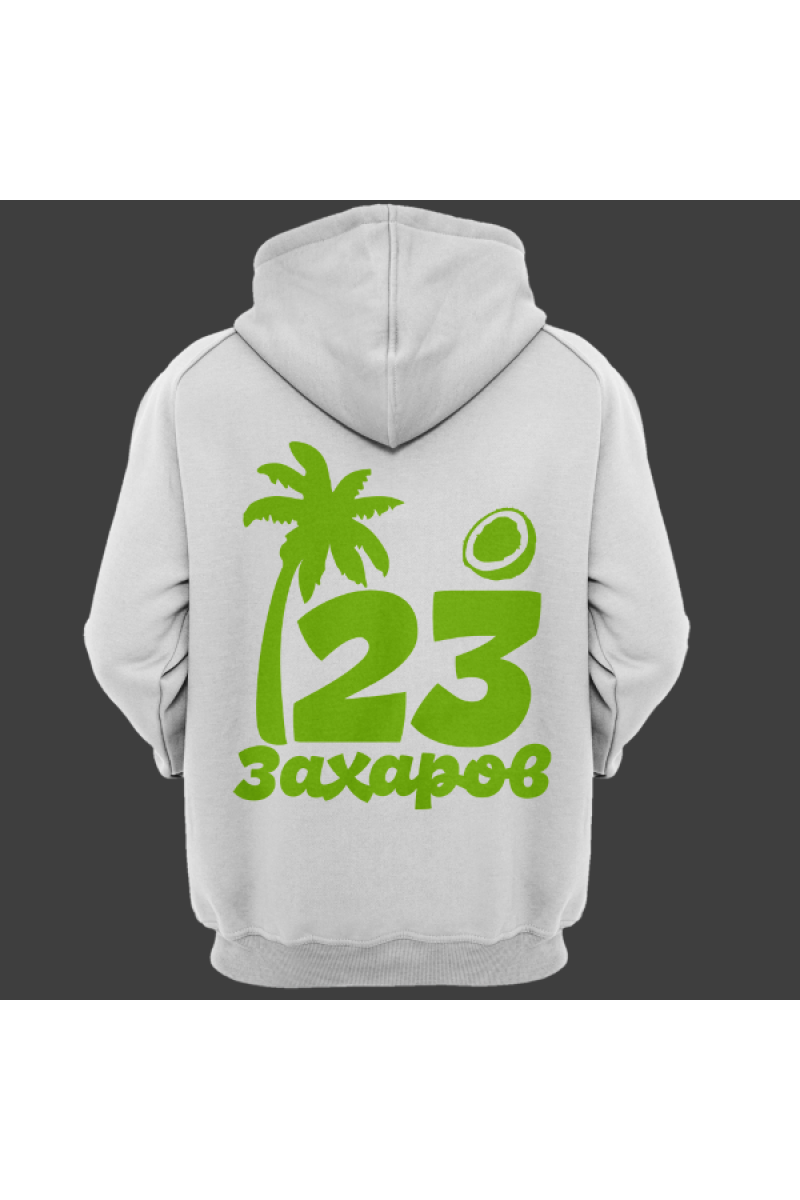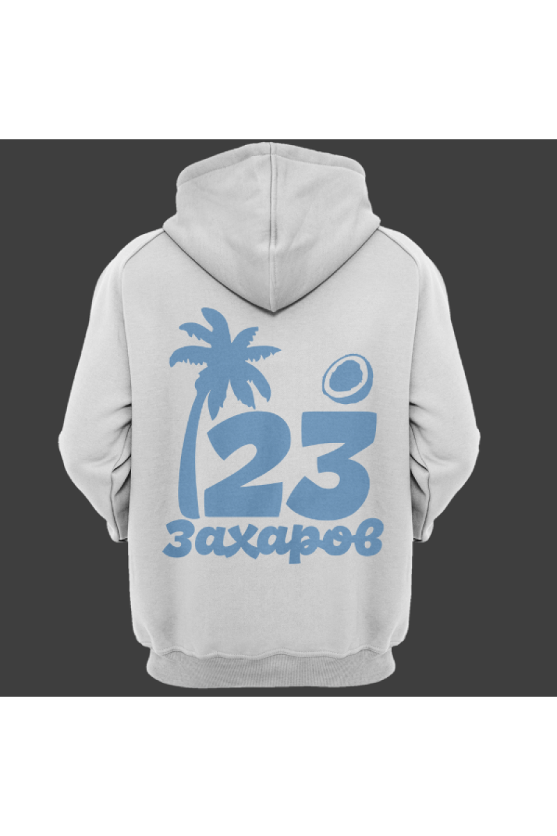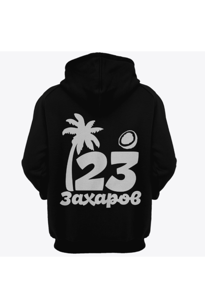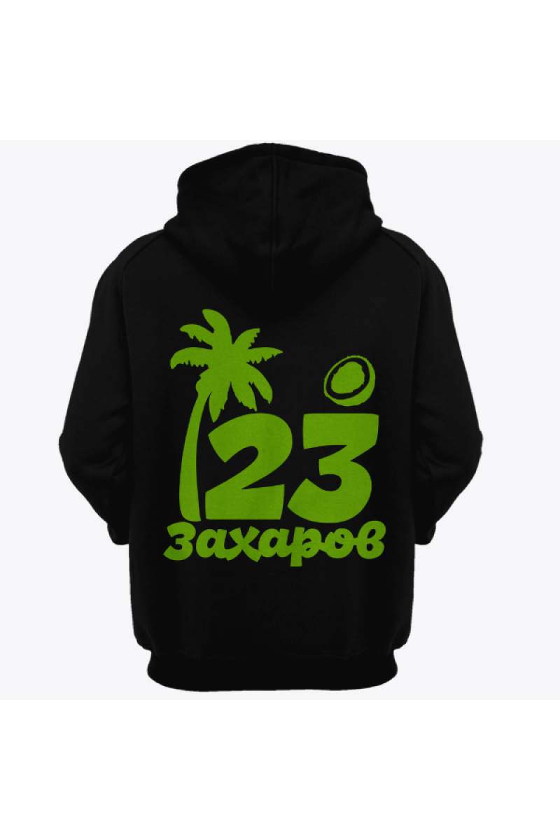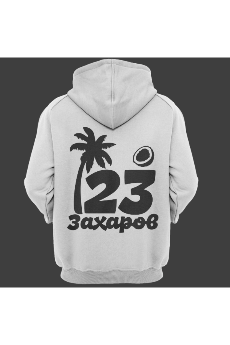 Веселая именная толстовка с тропическим шрифтом. Помимо надписи на толстовке есть изображение пальмы и кокоса.