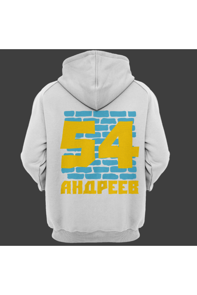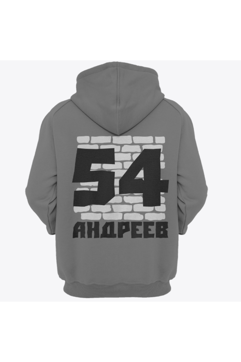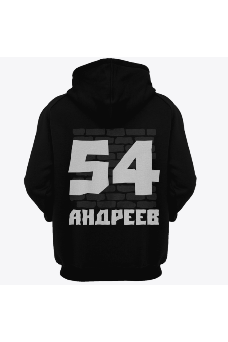 Веселая именная толстовка с жирным шрифтом. Помимо надписи на толстовке есть изображение кирпичной стены.