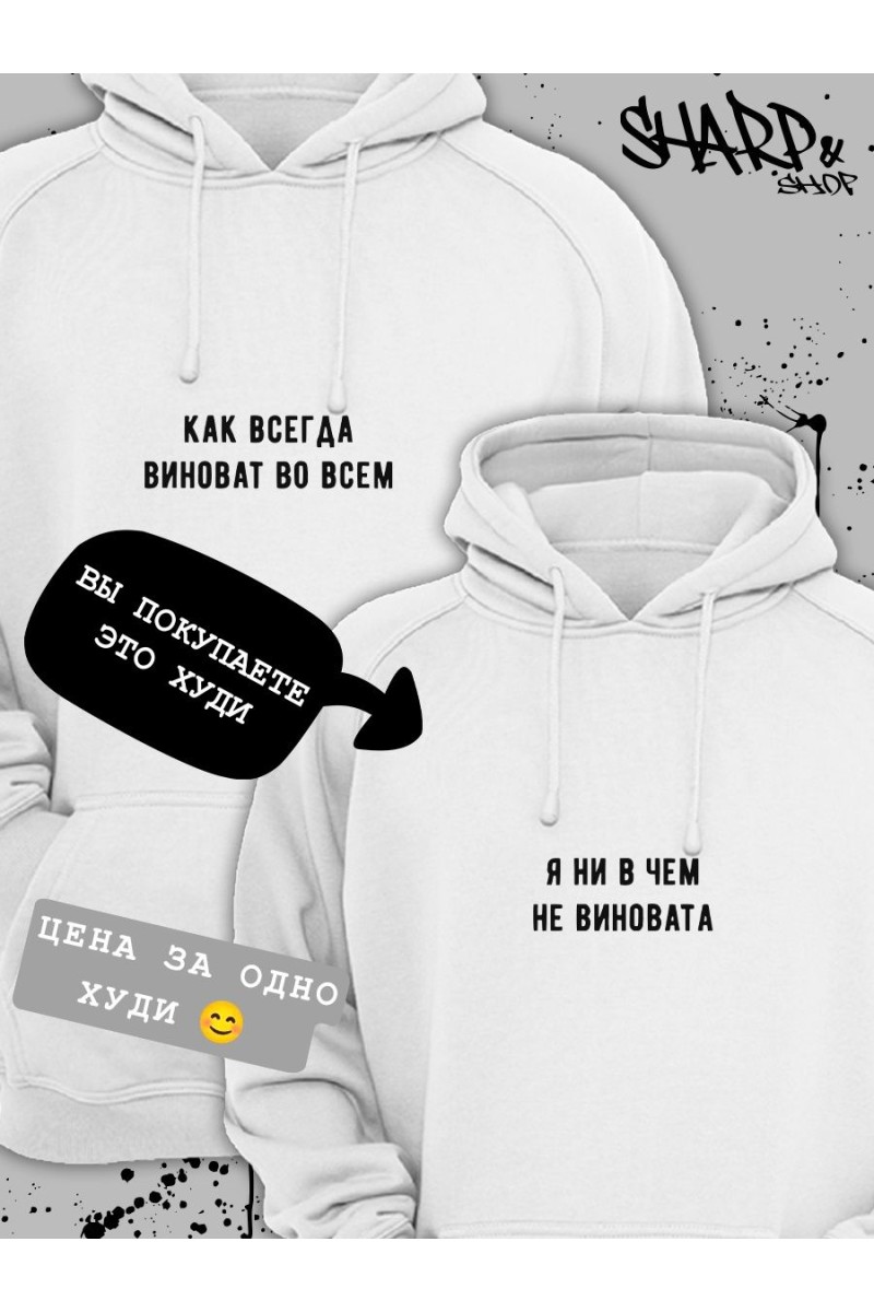 ВНИМАНИЕ! Вы заказываете ОДНУ толстовку (на картинке она помечана ярлычком). Пару к ней ищите в карусели). В этой карточке товара есть толстовки (футболки, свитшоты) Арбузер & Встречаюсь с арбузером, Биба & Боба, Душнила & Душнила поменьше, Ее котик & Его киса, Виноват & Не виновата, Люблю свою жену & Люблю своего мужа, Сладенькое & Люблю сладенькое, Терпение & Вынос мозга. Парные худи для влюбленных с принтом, толстовки для подруг – отличный подарок на любой праздник: день влюбленных 14 февраля, день рождения, годовщину. Парные вещи для влюбленных парня и девушки – прекрасный вариант для модного парного лука, парные толстовки для пар могут быть как приколы для друзей. Черная белая парные худи оверсайз с принтом смешными надписями не только разнообразят ваш гардероб, но и привлекут внимание к вашей паре на улице. Парные вещи для подруг пар всегда порадуют вас как подарок для парня, девушки. Парная одежда для семьи, товары для влюбленных подойдут для лп, мужа и жены как комфортная домашняя одежда и как парные костюмы для парня и девушки на свидание, для прогулки, похода в кино, кафе и фотосессии. Парные худи с парнем для подруг подойдут под спортивный и повседневный стиль. Если не знаете, что подарить на день Святого Валентина подарки какие выбрать для друзей лучшей подруги парня девушки жены папы мамы сестры брата, то парные кофты для двоих – лучший вариант. Парные толстовки оверсайз с капюшоном карманом как парный подарок для влюбленных. В нашем магазине есть парные толстовки футболки для влюбленных свободного кроя больших размеров 3xl. Если любите oversize, рекомендуем заказать на 1-2 размера больше. Тогда молодежная одежда будет смотреться стильно и не будет сковывать движений. Отличный выбор как свитер женский мужской для спорта. Кофта унисекс сделана из мягкой ткани эко хлопок 100%, имеет прочные ровные швы. Парные толстовки для влюбленных высокого качества, не портятся после стирки. Стирать при температуре не выше 30°, вывернув наизнанку, отжимать при малом количестве оборотов, машинная сушка запрещена. При соблюдении рекомендаций парные кофты для влюбленных оверсайз будут продолжать радовать вас, яркий принт не будет трескаться и тускнеть. Подписывайтесь на наш бренд чтобы следить за модными трендами. Чтобы увидеть больше товаров с прикольными принтами, рисунками, надписями и мемами, переходите в каталог бренда в Wildberries :)