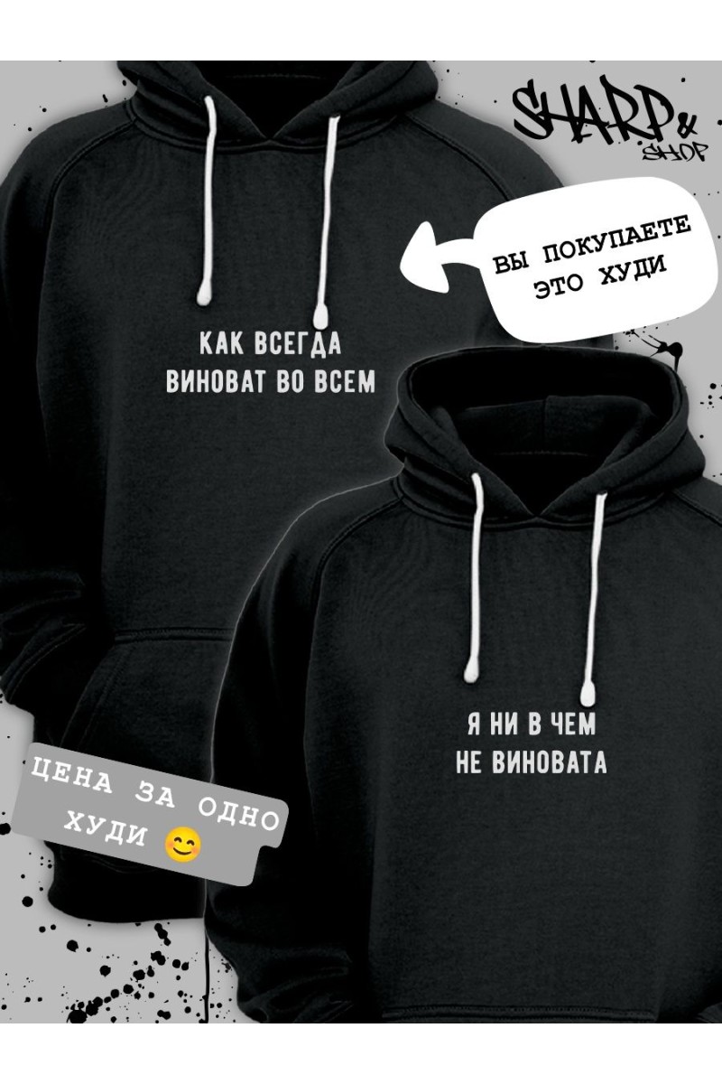 ВНИМАНИЕ! Вы заказываете ОДНУ толстовку (на картинке она помечана ярлычком). Пару к ней ищите в карусели). В этой карточке товара есть толстовки (футболки, свитшоты) Арбузер & Встречаюсь с арбузером, Биба & Боба, Душнила & Душнила поменьше, Ее котик & Его киса, Виноват & Не виновата, Люблю свою жену & Люблю своего мужа, Сладенькое & Люблю сладенькое, Терпение & Вынос мозга. Парные худи для влюбленных с принтом, толстовки для подруг – отличный подарок на любой праздник: день влюбленных 14 февраля, день рождения, годовщину. Парные вещи для влюбленных парня и девушки – прекрасный вариант для модного парного лука, парные толстовки для пар могут быть как приколы для друзей. Черная белая парные худи оверсайз с принтом смешными надписями не только разнообразят ваш гардероб, но и привлекут внимание к вашей паре на улице. Парные вещи для подруг пар всегда порадуют вас как подарок для парня, девушки. Парная одежда для семьи, товары для влюбленных подойдут для лп, мужа и жены как комфортная домашняя одежда и как парные костюмы для парня и девушки на свидание, для прогулки, похода в кино, кафе и фотосессии. Парные худи с парнем для подруг подойдут под спортивный и повседневный стиль. Если не знаете, что подарить на день Святого Валентина подарки какие выбрать для друзей лучшей подруги парня девушки жены папы мамы сестры брата, то парные кофты для двоих – лучший вариант. Парные толстовки оверсайз с капюшоном карманом как парный подарок для влюбленных. В нашем магазине есть парные толстовки футболки для влюбленных свободного кроя больших размеров 3xl. Если любите oversize, рекомендуем заказать на 1-2 размера больше. Тогда молодежная одежда будет смотреться стильно и не будет сковывать движений. Отличный выбор как свитер женский мужской для спорта. Кофта унисекс сделана из мягкой ткани эко хлопок 100%, имеет прочные ровные швы. Парные толстовки для влюбленных высокого качества, не портятся после стирки. Стирать при температуре не выше 30°, вывернув наизнанку, отжимать при малом количестве оборотов, машинная сушка запрещена. При соблюдении рекомендаций парные кофты для влюбленных оверсайз будут продолжать радовать вас, яркий принт не будет трескаться и тускнеть. Подписывайтесь на наш бренд чтобы следить за модными трендами. Чтобы увидеть больше товаров с прикольными принтами, рисунками, надписями и мемами, переходите в каталог бренда в Wildberries :)