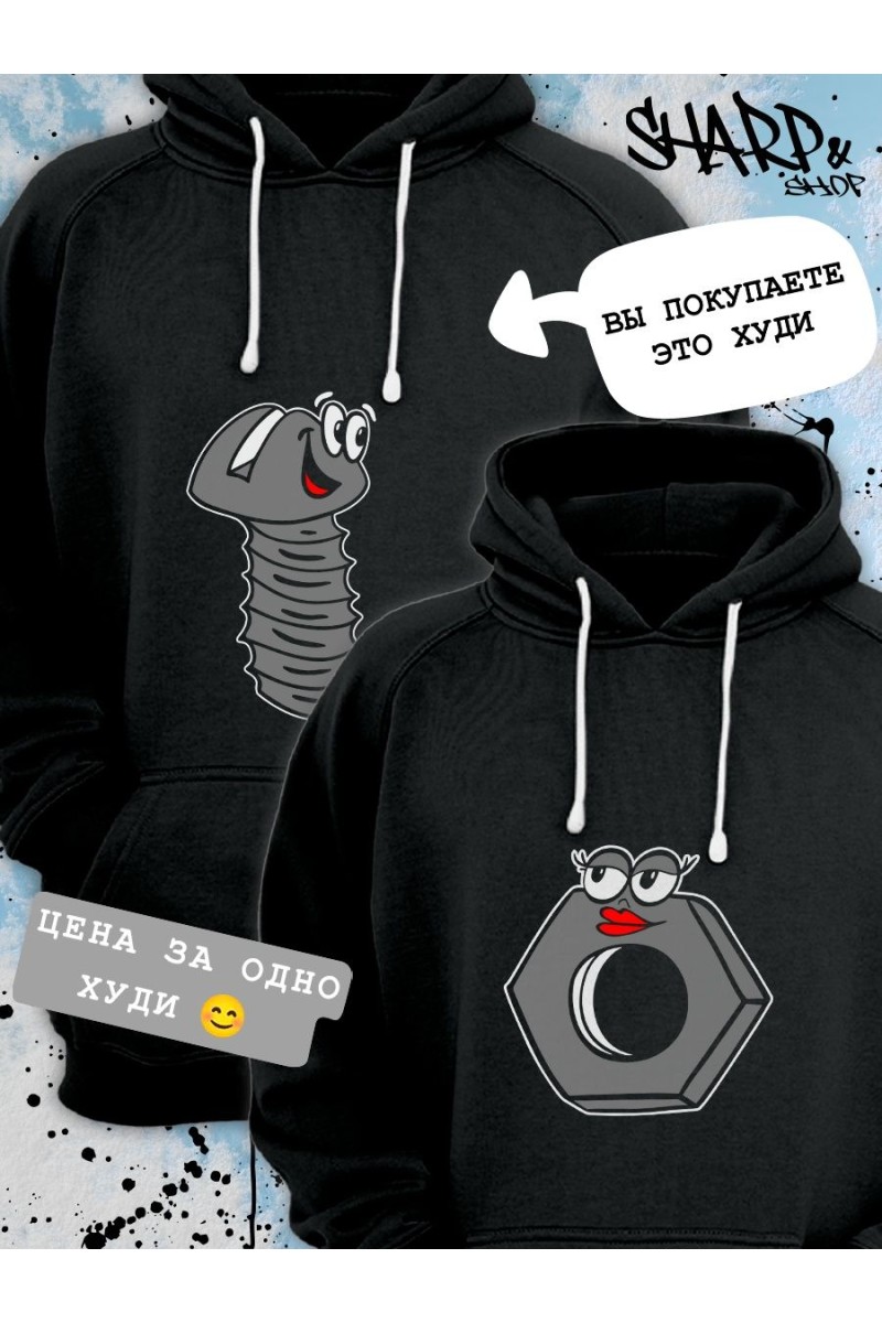 Толстовки парные для влюбленных с надписью и рисункомНазначение