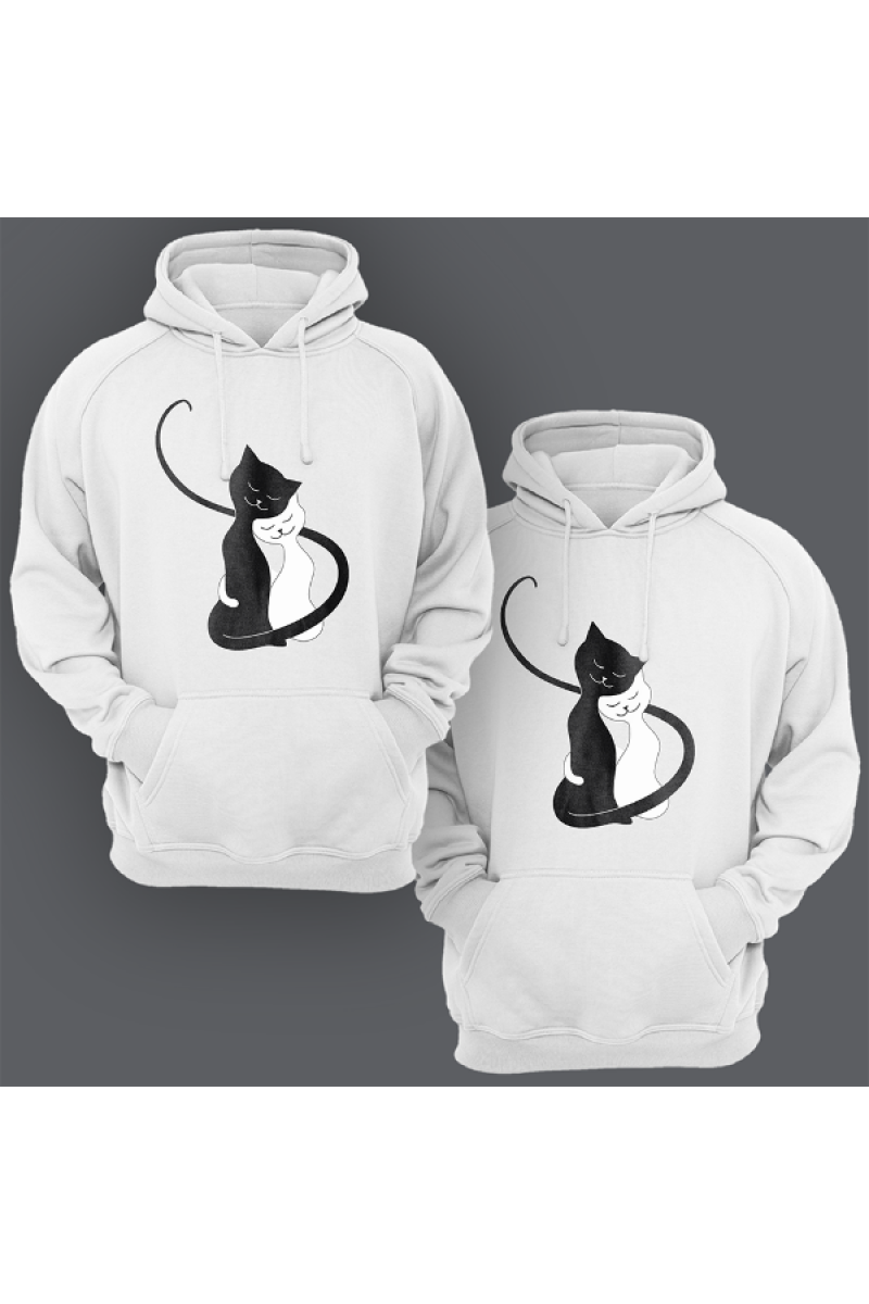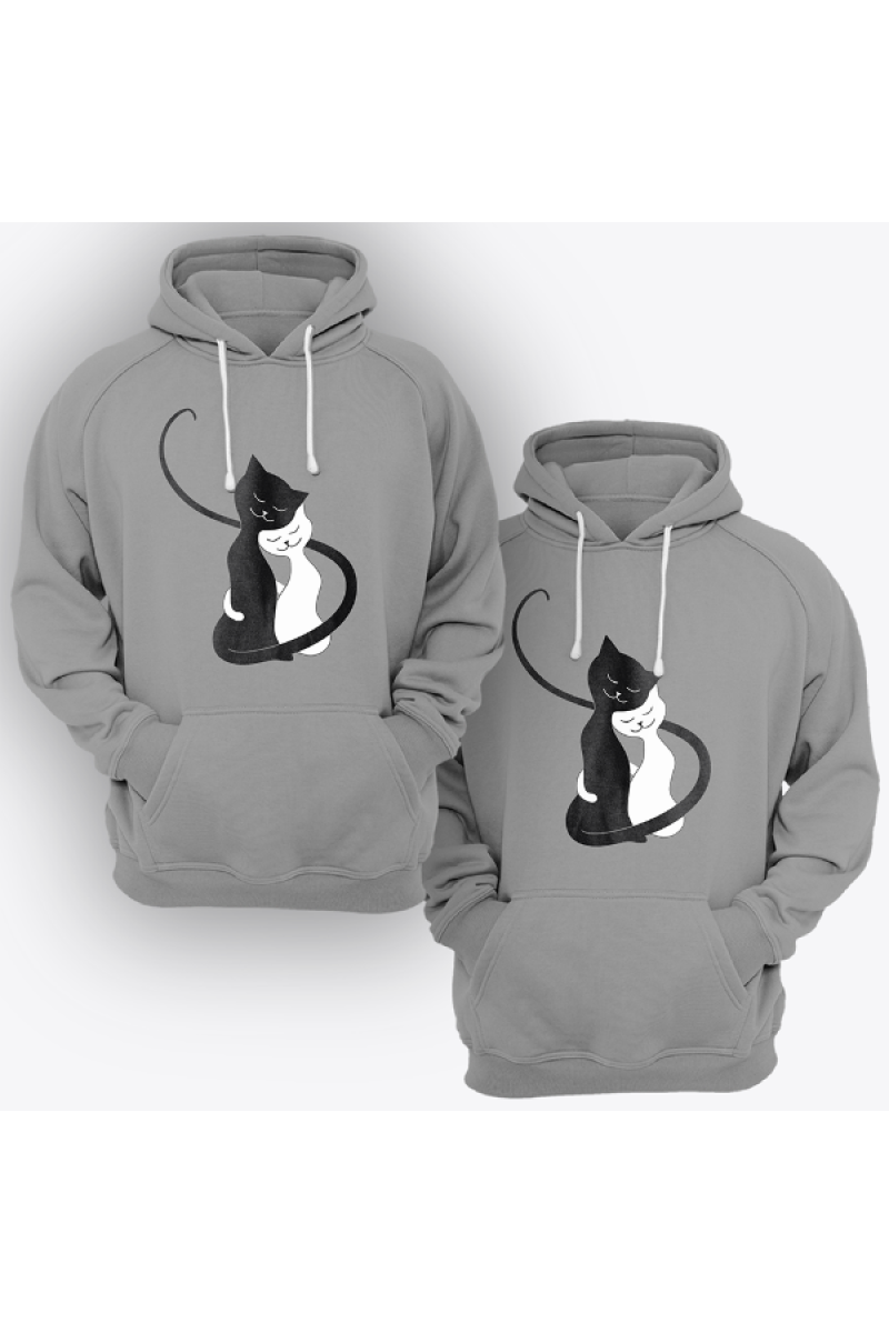 Парная толстовка с капюшоном с принтом "Обнимающиеся котики"