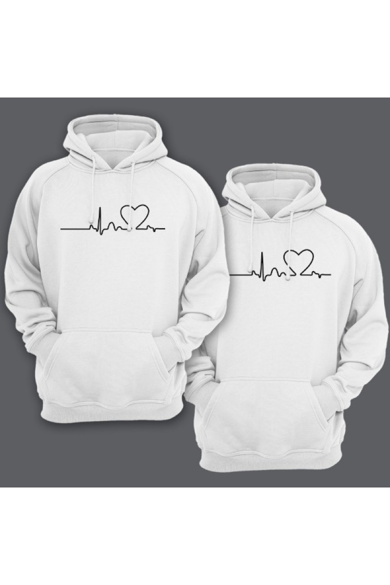 Парные толстовки для влюбленных с оригинальным принтом в виде линии пульса, на которой можно увидеть силуэт сердца.
