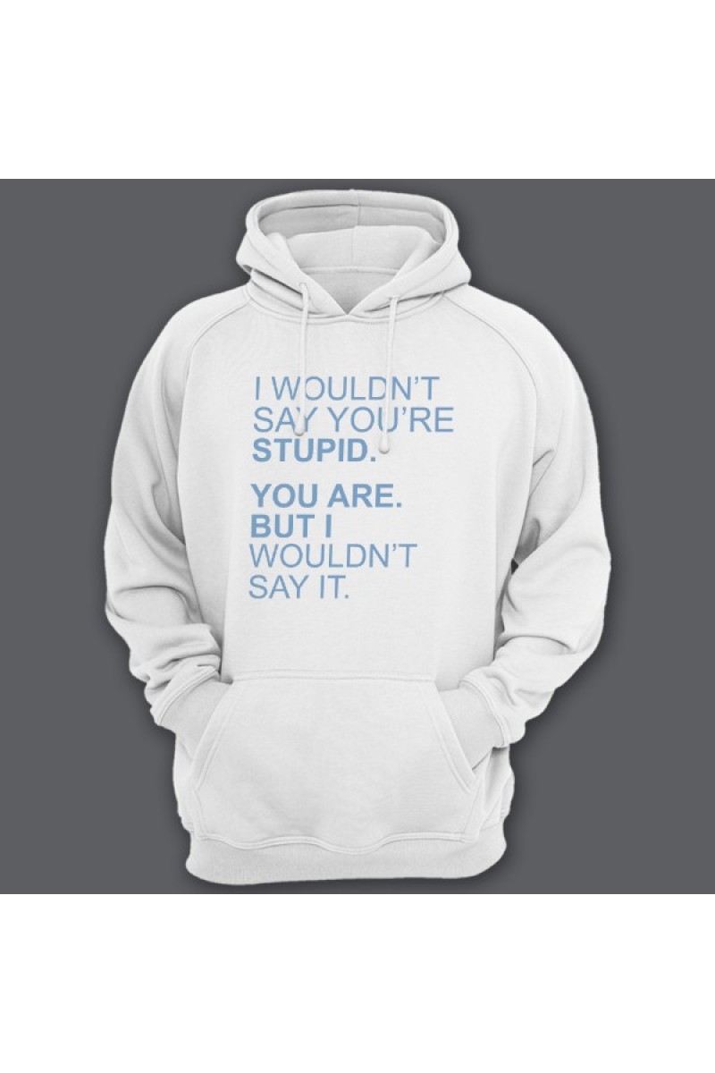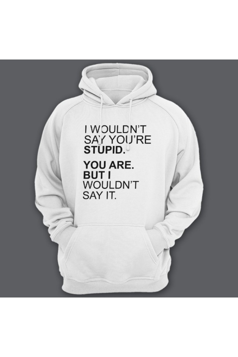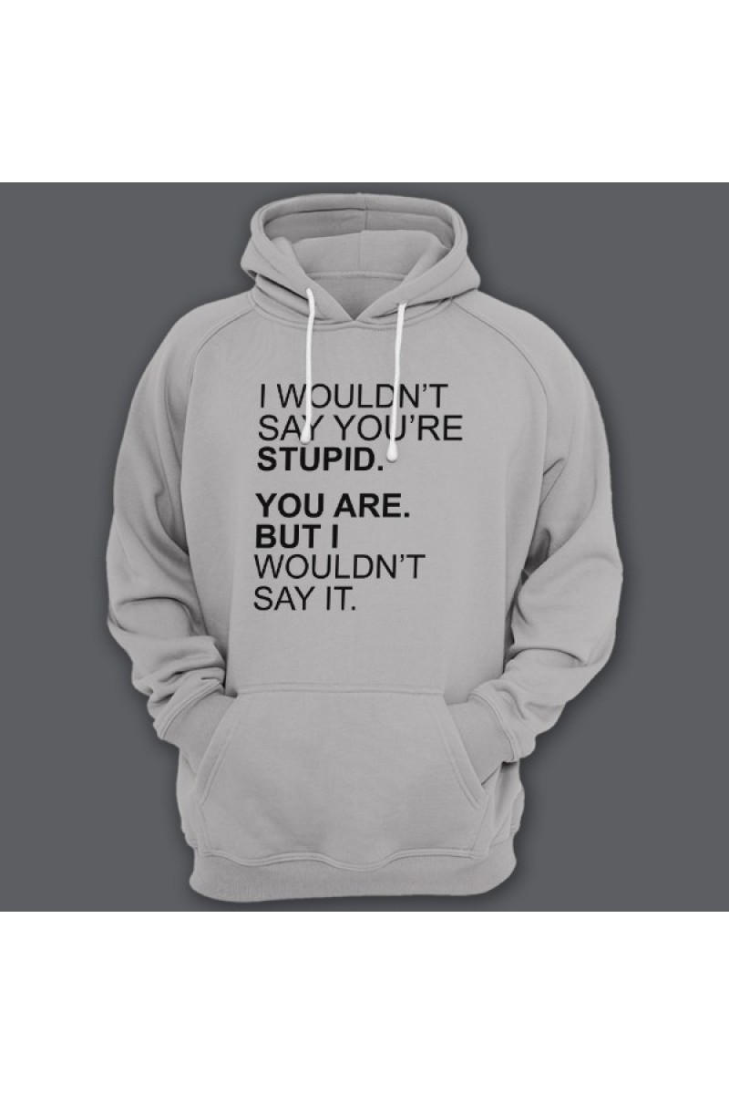 Смешная толстовка с капюшоном с надписью "I wouldn't say you're stupid. You are. But i wouldn't say it." - Я бы не сказал что ты тупой. Ты тупой. Но я этого не сказал.