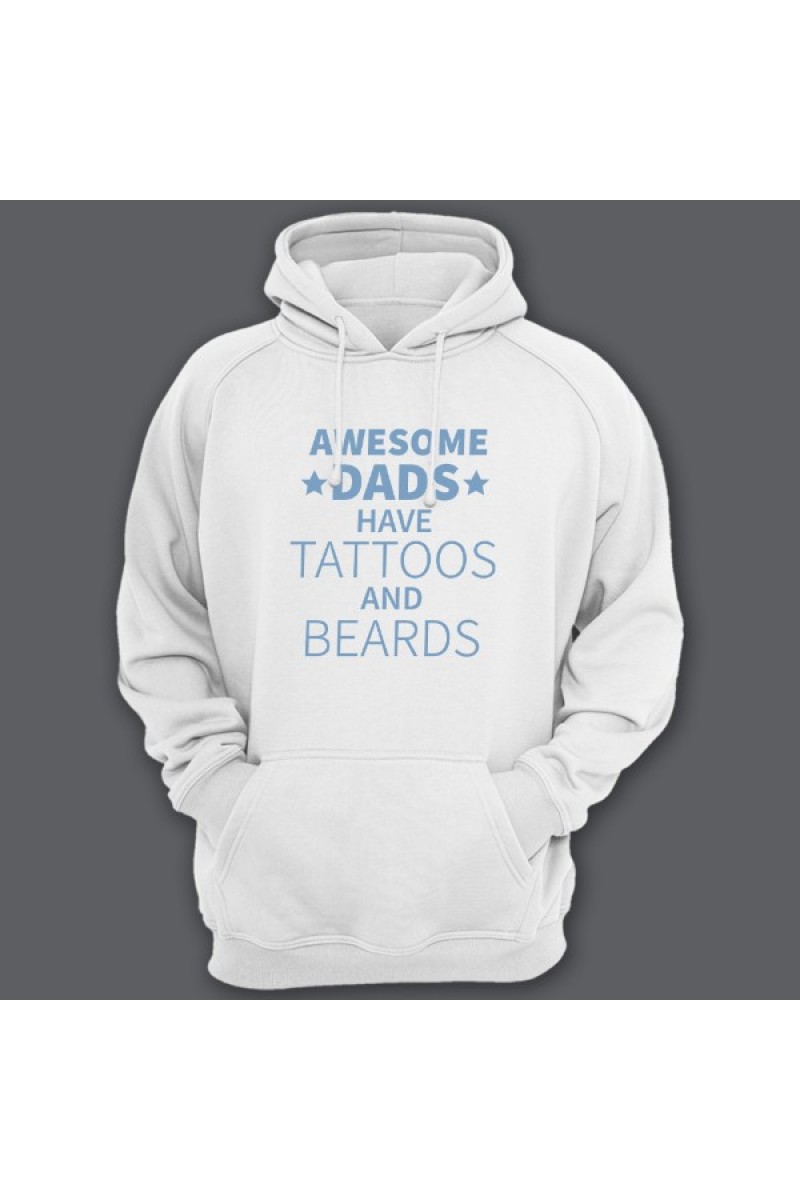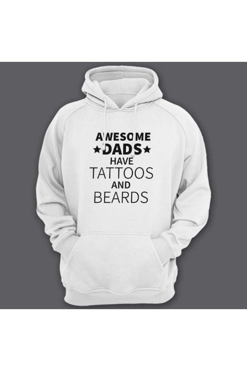 Веселая подарочная толстовка для папы. "Awesome dads have tattoos and beards" - У офигительных пап есть татуировки и борода.
