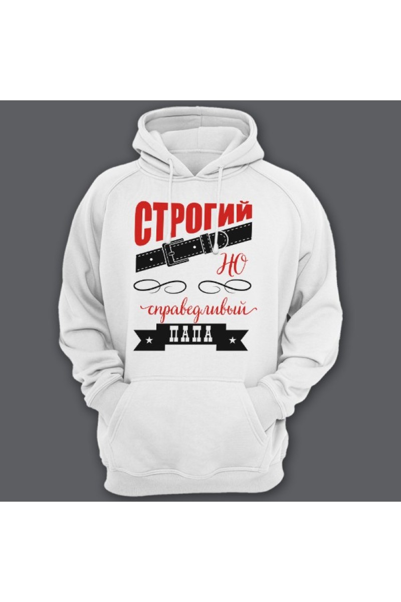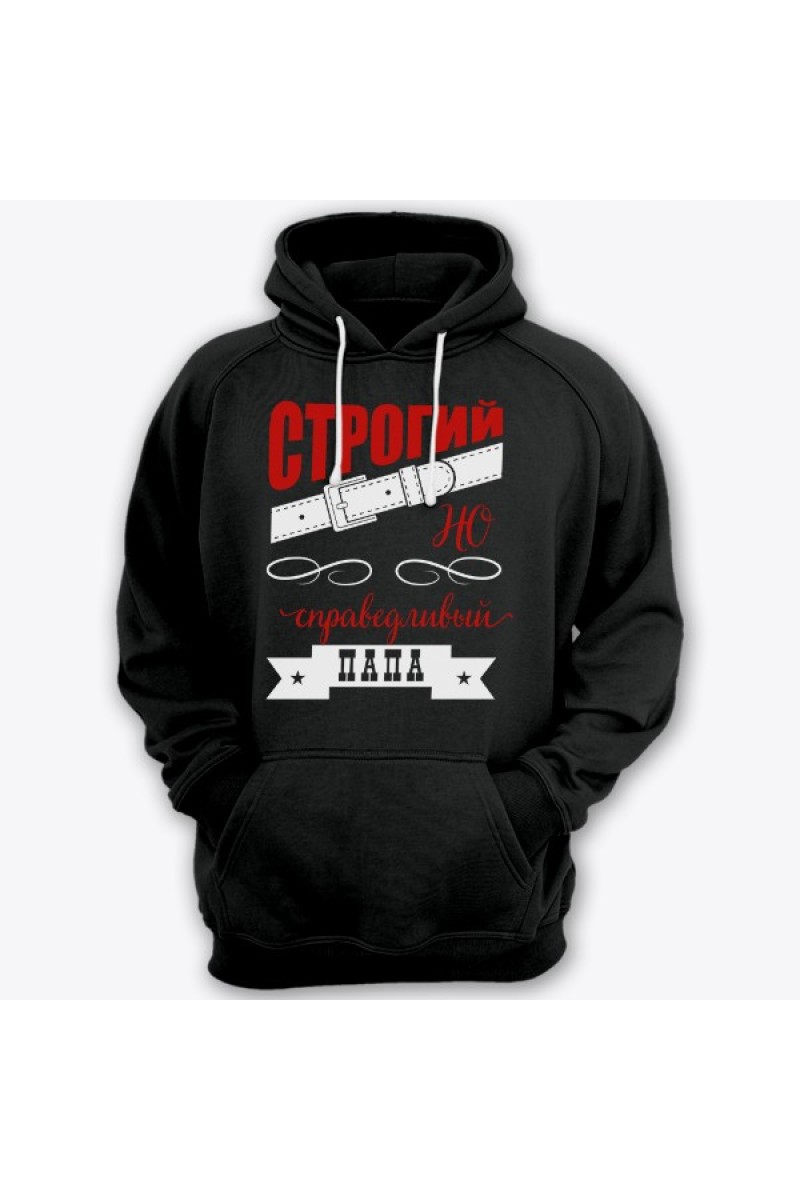 Толстовка для папы с надписью "Строгий, но справедливый папа"