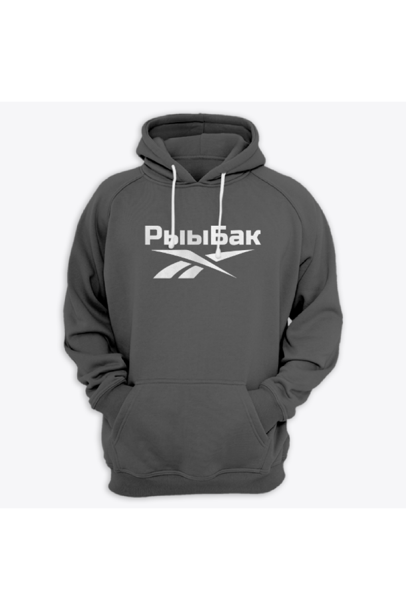 Смешная толстовка с принтом "Рыыбак" - отсылка к логотипу фирмы Reebok.