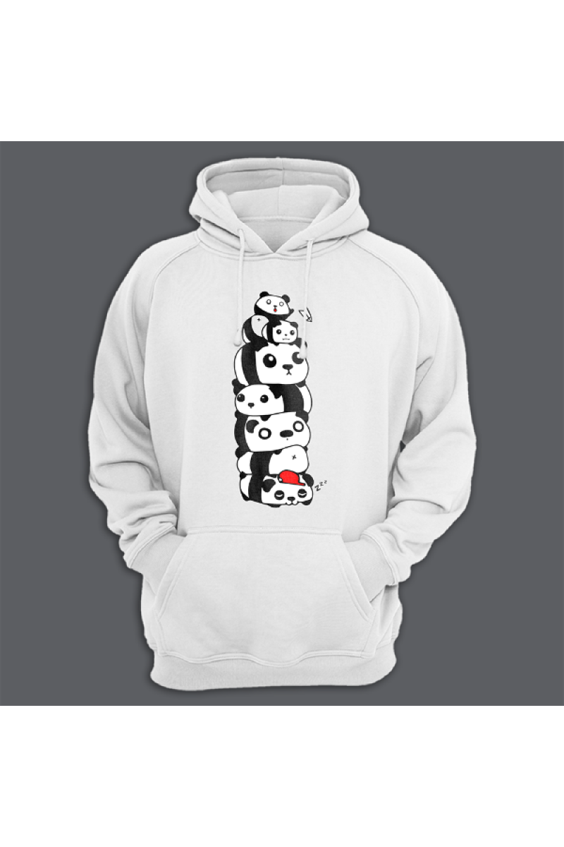 Смешная толстовка со смешным принтом на котором изображены панды лежащие друг на друге в разных костюмчиках.