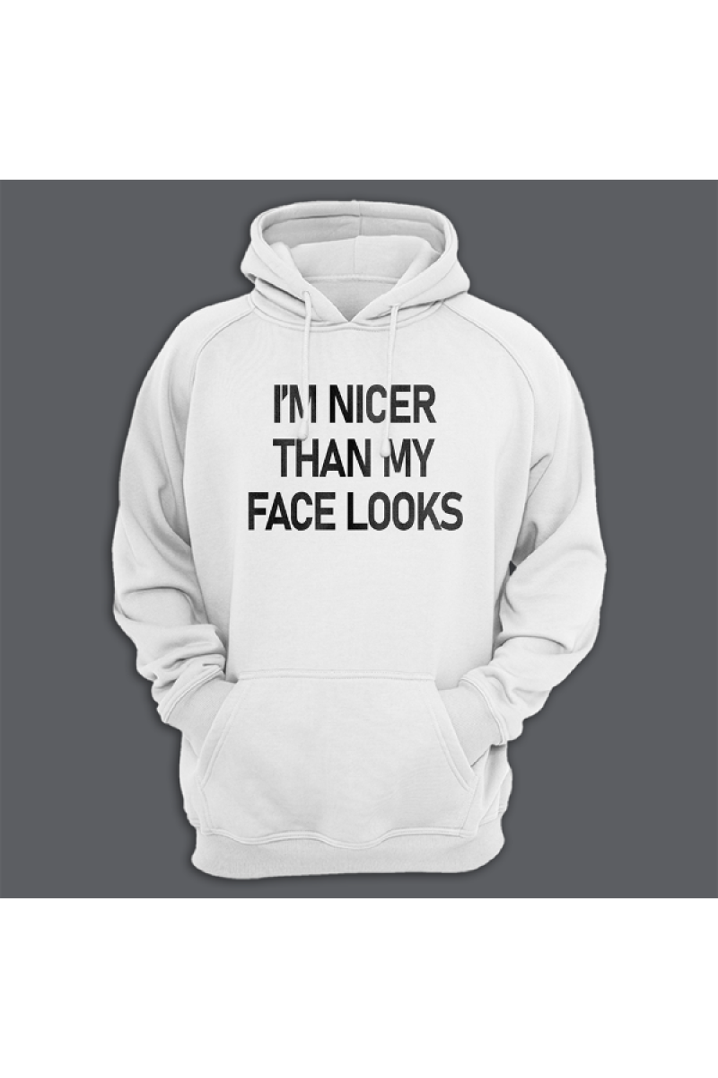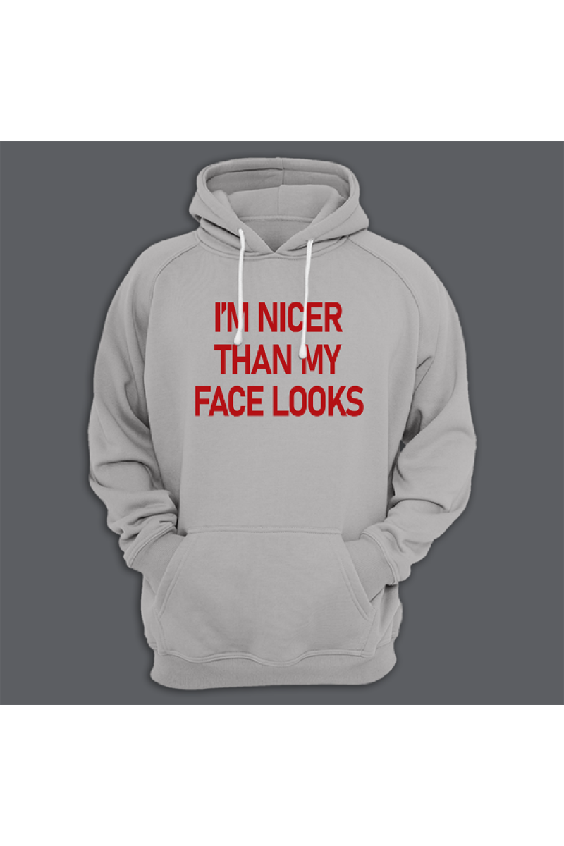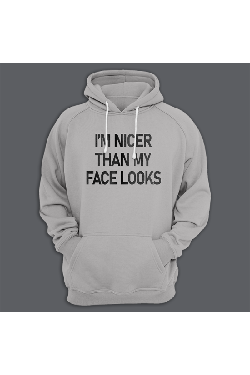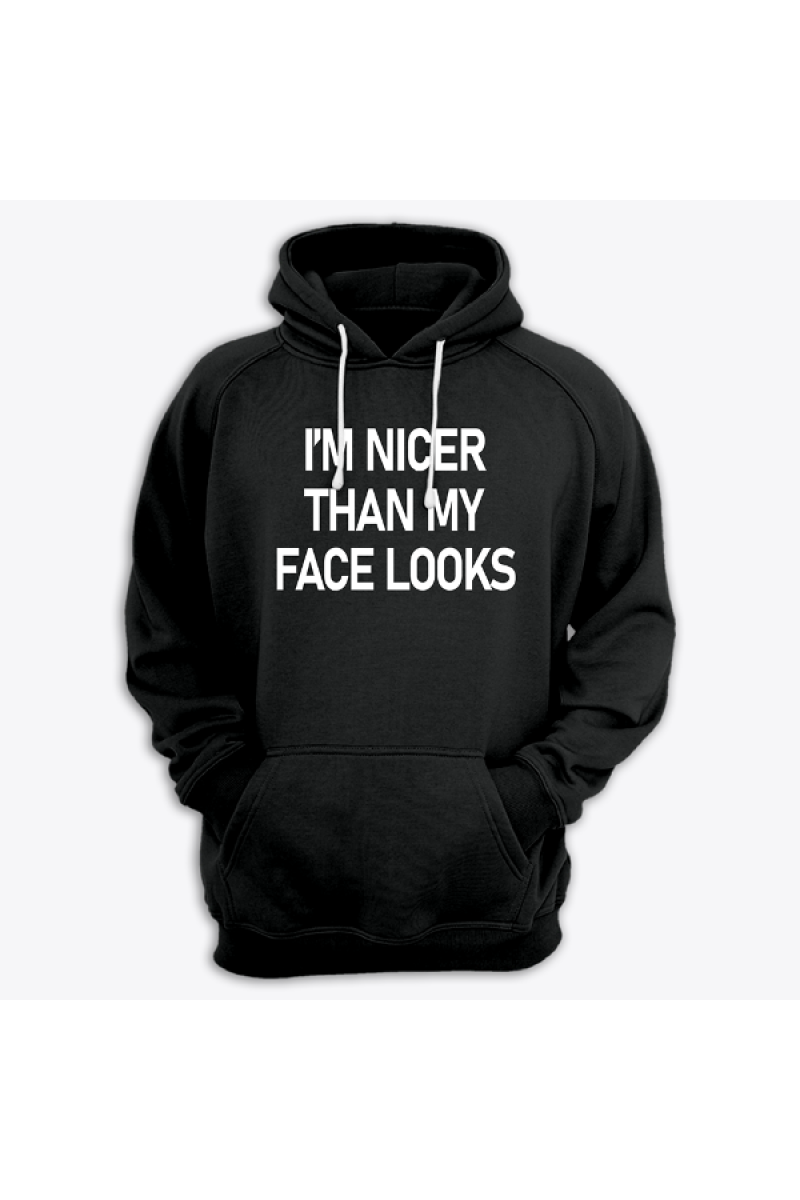 Смешная толстовка с принтом "I'm nicer than my face looks" - "Я лучше, чем выглядит мое лицо".