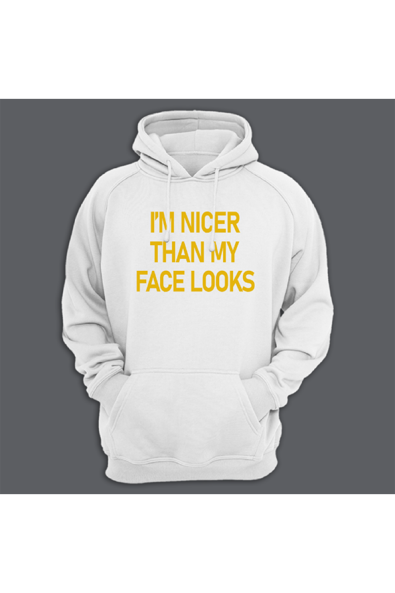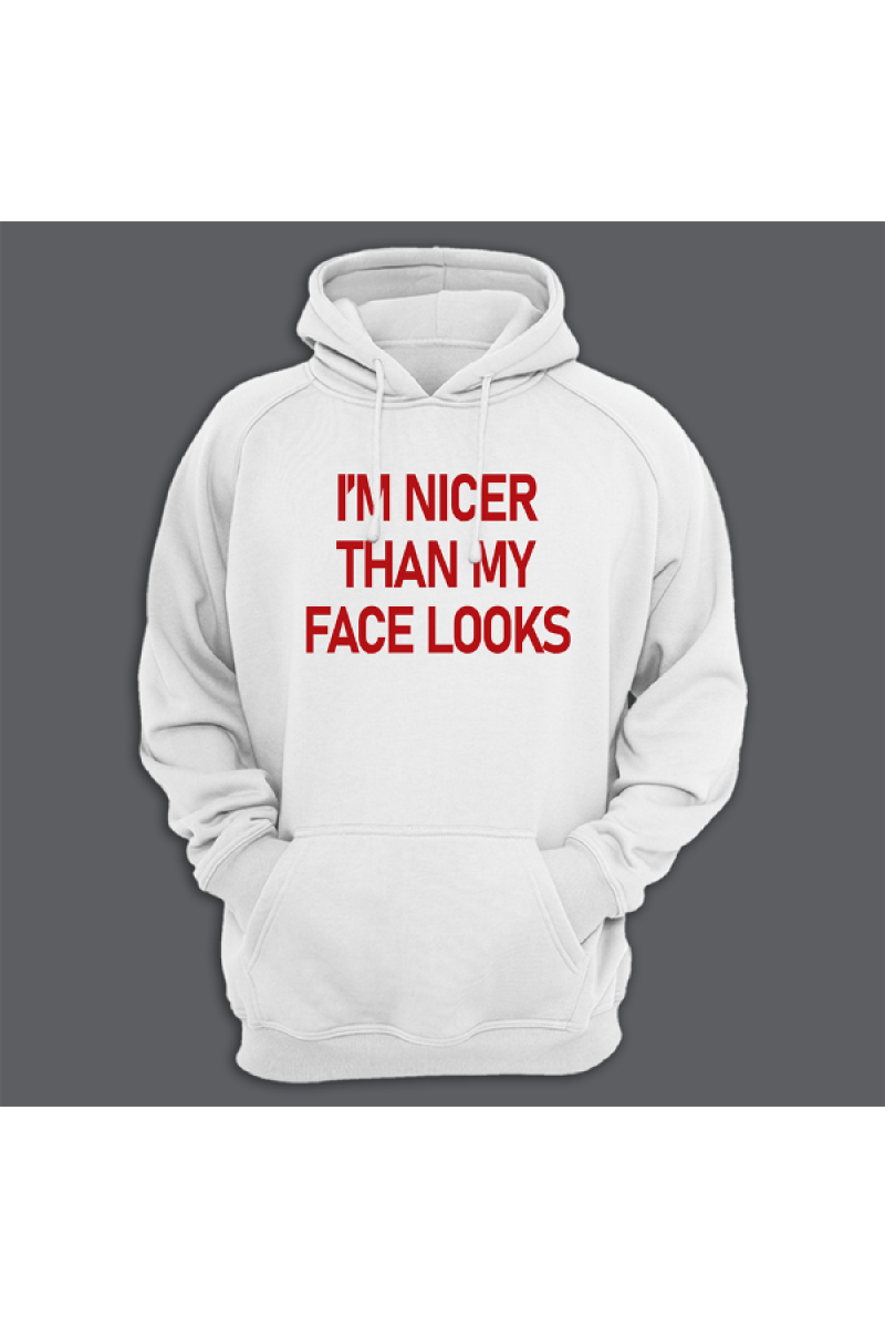 Прикольная толстовка с принтом "I'm nicer than my face looks"