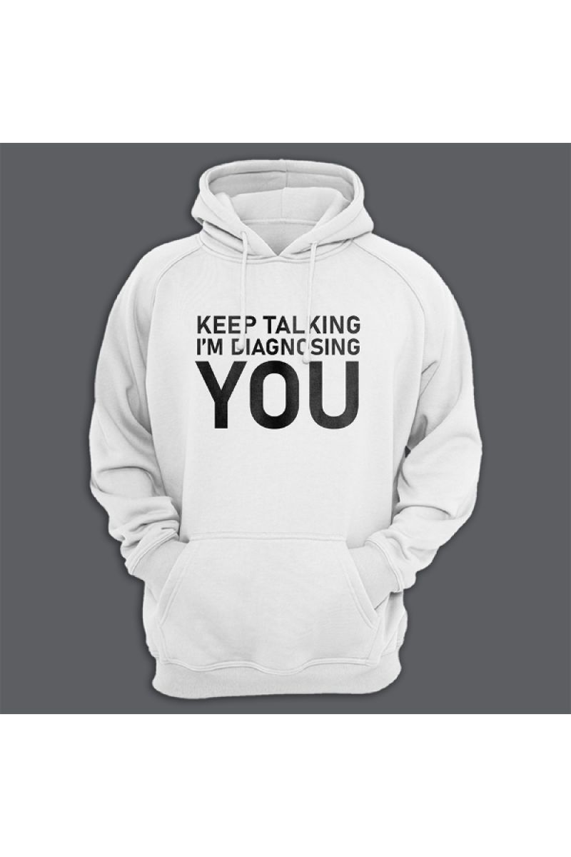 Смешная толстовка с принтом "Keep talking i'm diagnosing you" - "Продолжай говорить, я тебя исследую"