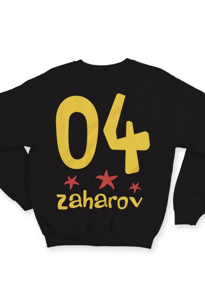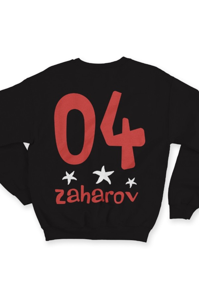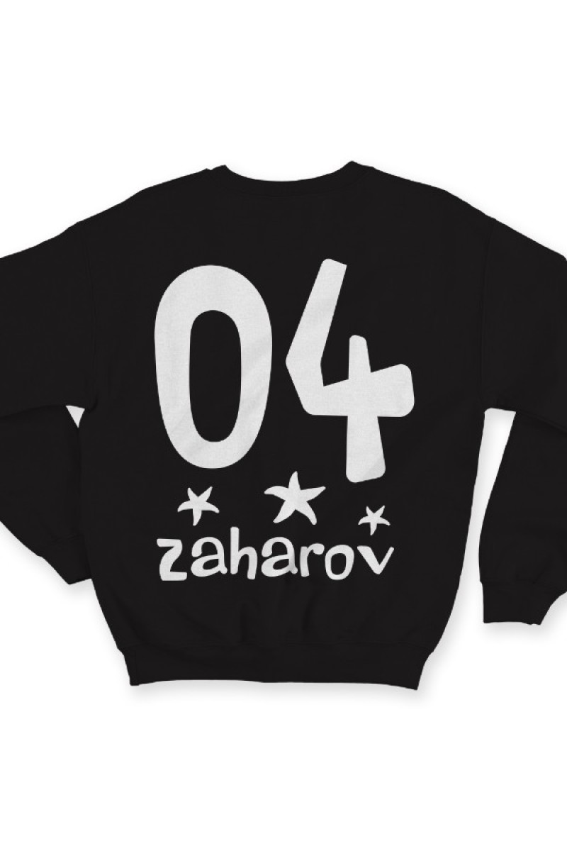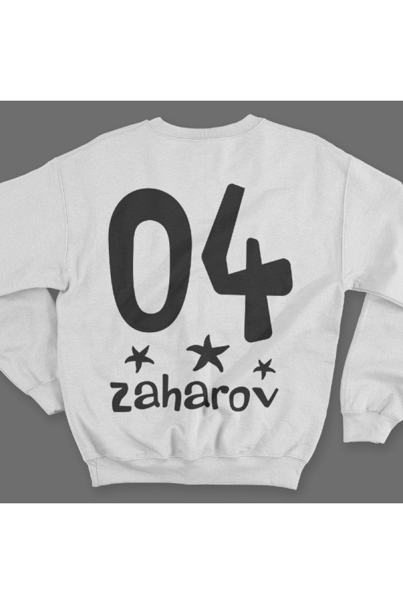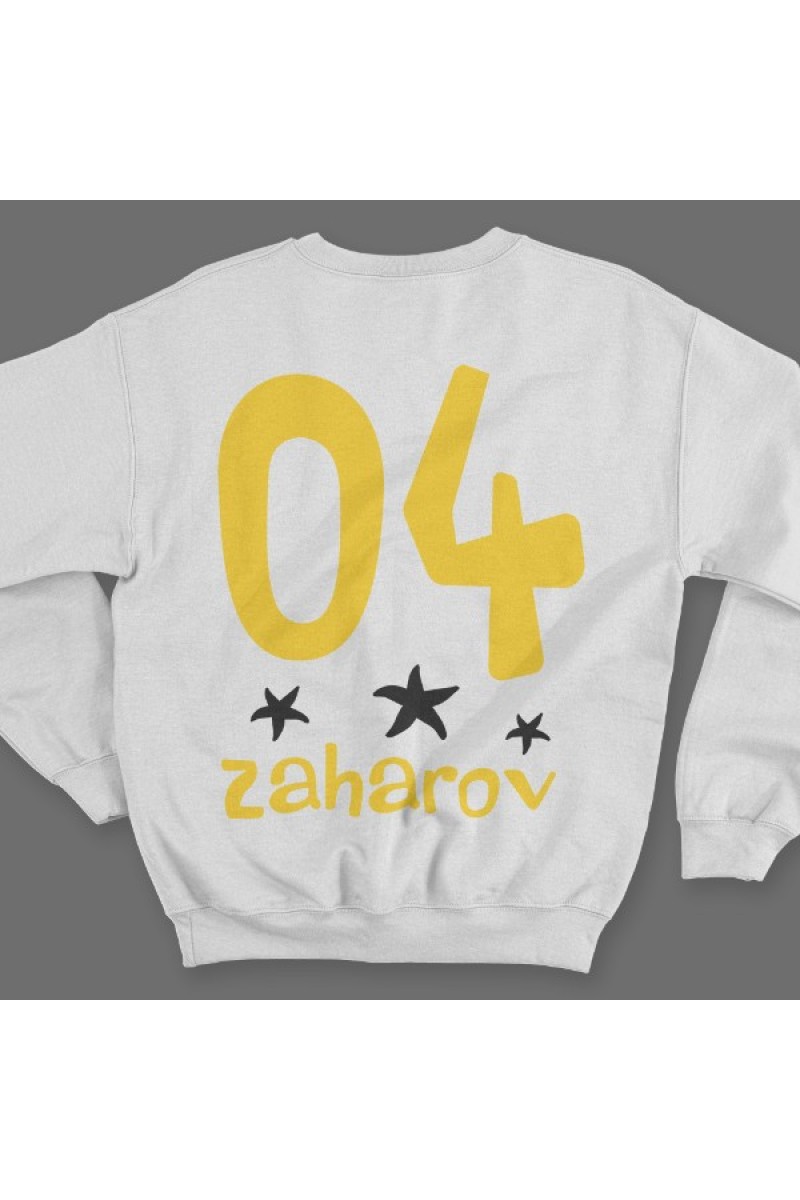 Веселая именной свитшот с мультяшным шрифтом. Помимо надписи на свитшоте есть изображения морских звезд.