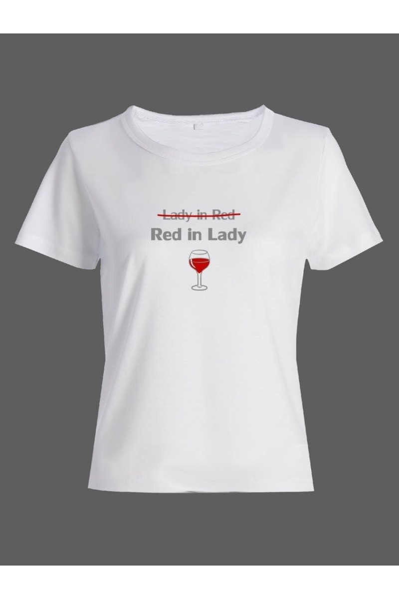 Футболка для женщины с забавным текстом "Lady in red Red in Lady". Настало время шоппинг-террапии. Такая покупка способна поднять даже самое плохое настроение. В большой компании у вас велик шанс, что вы привлечете к себе внимание. Смешные футболки определенно им понравятся. Не забудьте рассказать дорогим друзьям, где вы раздобыли такое сокровище. Чем отличаются женские футболки от мужских? Они приталенные, а вырез увеличен. Одежда натуральна, 100% хлопок. Порадуйте такой футболкой лучшую подругу или сестру. Можете приобрести одинаковые - станьте роднее, почувствуйте себя близнецами, которых некоторые так любят одевать одинаково. Чтобы футболка подарила вам заряд счастья, выберите правильный размер. В нашем магазине футболки идут размер в размер. На сайте имеется таблица размеров. Уточните размер, ведь маленькая футболка вам точно не нужна, купите свободную. Пусть будет на размер больше, а не меньше.