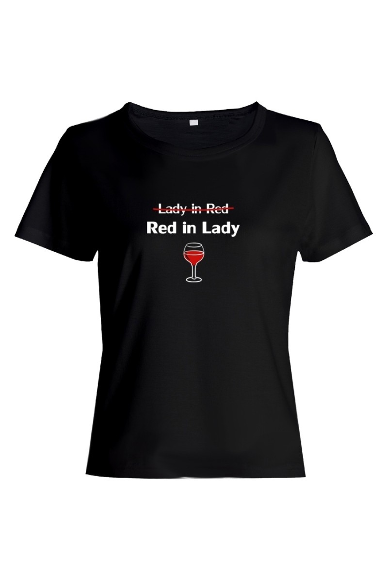 Футболка для женщины с забавным текстом "Lady in red Red in Lady". Настало время шоппинг-террапии. Такая покупка способна поднять даже самое плохое настроение. В большой компании у вас велик шанс, что вы привлечете к себе внимание. Смешные футболки определенно им понравятся. Не забудьте рассказать дорогим друзьям, где вы раздобыли такое сокровище. Чем отличаются женские футболки от мужских? Они приталенные, а вырез увеличен. Одежда натуральна, 100% хлопок. Порадуйте такой футболкой лучшую подругу или сестру. Можете приобрести одинаковые - станьте роднее, почувствуйте себя близнецами, которых некоторые так любят одевать одинаково. Чтобы футболка подарила вам заряд счастья, выберите правильный размер. В нашем магазине футболки идут размер в размер. На сайте имеется таблица размеров. Уточните размер, ведь маленькая футболка вам точно не нужна, купите свободную. Пусть будет на размер больше, а не меньше.