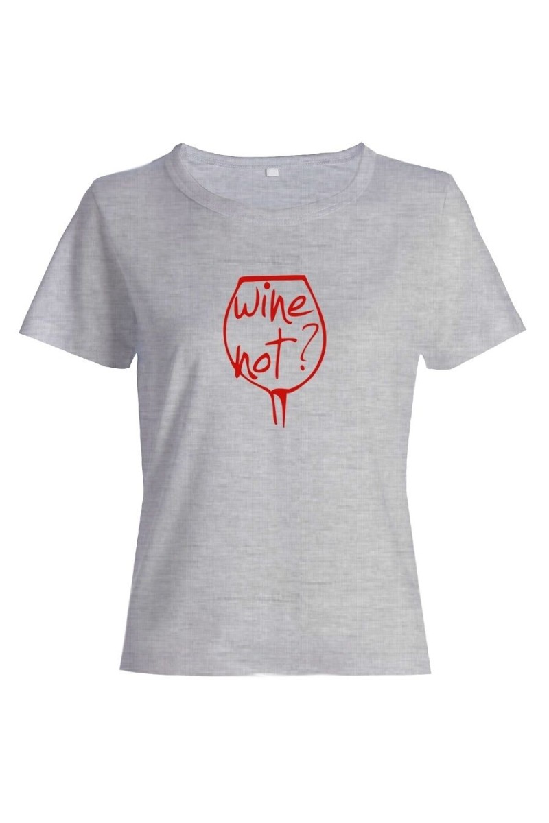 Футболка для женщины с забавным текстом "Wine not". Настало время шоппинг-террапии. Такая покупка способна поднять даже самое плохое настроение. В большой компании у вас велик шанс, что вы привлечете к себе внимание. Смешные футболки определенно им понравятся. Не забудьте рассказать дорогим друзьям, где вы раздобыли такое сокровище. Чем отличаются женские футболки от мужских? Они приталенные, а вырез увеличен. Одежда натуральна, 100% хлопок. Порадуйте такой футболкой лучшую подругу или сестру. Можете приобрести одинаковые - станьте роднее, почувствуйте себя близнецами, которых некоторые так любят одевать одинаково. Чтобы футболка подарила вам заряд счастья, выберите правильный размер. В нашем магазине футболки идут размер в размер. На сайте имеется таблица размеров. Уточните размер, ведь маленькая футболка вам точно не нужна, купите свободную. Пусть будет на размер больше, а не меньше.