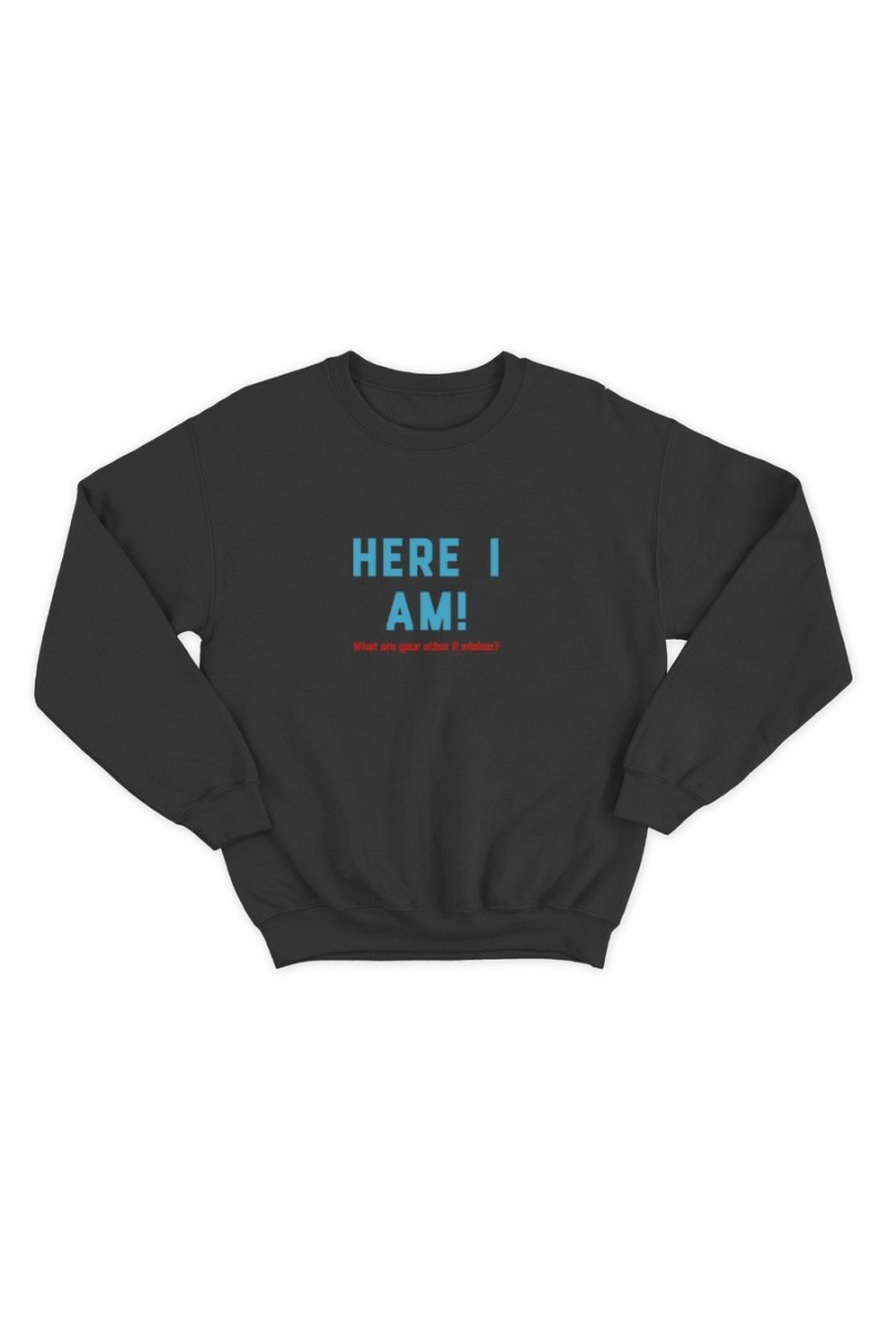 Свитшот с классным принтом"Here i am". Порадуйте себя новой толстовкой без капюшона. Это один из простых способов выделиться из толпы. В нашем магазине огромный выбор свитшотов с прикольными принтами и надписями. Вы по-любому найдете для себя что-то интересное. Оригинальный свитшот с клевым принтом - это то, что вам нужно. Новая покупка здорово поднимает настроение. Особенно, если это свитшоты с принтами из нашего магазина. Состав: 100% хлопок. Не только красиво, но еще и не вредит здоровью: ткань из хлопка не вызывает аллергическую реакцию и пропускает воздух, что позволяет телу дышать. Однако, прежде чем добавлять в корзину, убедитесь, что выбрали свой размер. На сайте указаны размеры для женских свитшотов, мужские - больше на 1-2 размера. Если все-равно переживаете из-за размера, то лучше приобретите на размер больше. Свободный свитшот - это так круто.