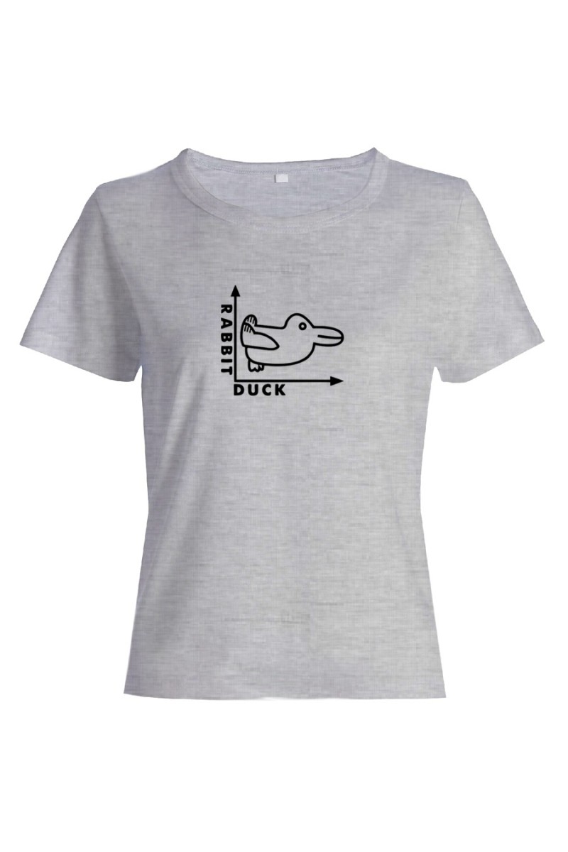 Футболка для женщины с забавным текстом "Rabbit Duck". Настало время шоппинг-террапии. Такая покупка способна поднять даже самое плохое настроение. В большой компании у вас велик шанс, что вы привлечете к себе внимание. Смешные футболки определенно им понравятся. Не забудьте рассказать дорогим друзьям, где вы раздобыли такое сокровище. Чем отличаются женские футболки от мужских? Они приталенные, а вырез увеличен. Одежда натуральна, 100% хлопок. Порадуйте такой футболкой лучшую подругу или сестру. Можете приобрести одинаковые - станьте роднее, почувствуйте себя близнецами, которых некоторые так любят одевать одинаково. Чтобы футболка подарила вам заряд счастья, выберите правильный размер. В нашем магазине футболки идут размер в размер. На сайте имеется таблица размеров. Уточните размер, ведь маленькая футболка вам точно не нужна, купите свободную. Пусть будет на размер больше, а не меньше.