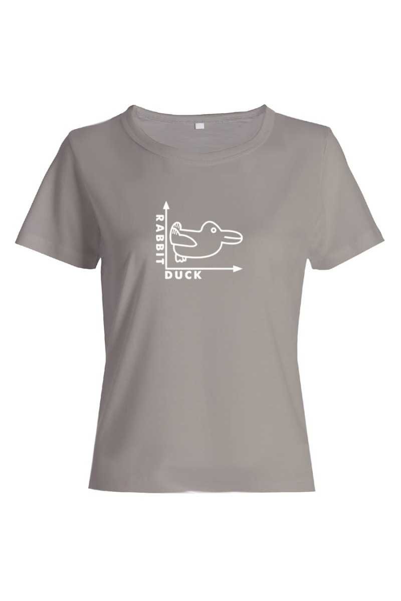 Футболка для женщины с забавным текстом "Rabbit Duck". Настало время шоппинг-террапии. Такая покупка способна поднять даже самое плохое настроение. В большой компании у вас велик шанс, что вы привлечете к себе внимание. Смешные футболки определенно им понравятся. Не забудьте рассказать дорогим друзьям, где вы раздобыли такое сокровище. Чем отличаются женские футболки от мужских? Они приталенные, а вырез увеличен. Одежда натуральна, 100% хлопок. Порадуйте такой футболкой лучшую подругу или сестру. Можете приобрести одинаковые - станьте роднее, почувствуйте себя близнецами, которых некоторые так любят одевать одинаково. Чтобы футболка подарила вам заряд счастья, выберите правильный размер. В нашем магазине футболки идут размер в размер. На сайте имеется таблица размеров. Уточните размер, ведь маленькая футболка вам точно не нужна, купите свободную. Пусть будет на размер больше, а не меньше.