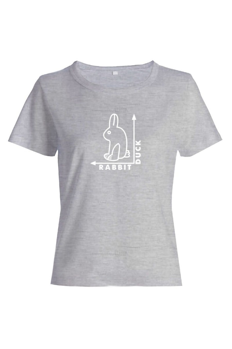 Футболка для женщины с забавным текстом "Rabbit Duck". Настало время шоппинг-террапии. Такая покупка способна поднять даже самое плохое настроение. В большой компании у вас велик шанс, что вы привлечете к себе внимание. Смешные футболки определенно им понравятся. Не забудьте рассказать дорогим друзьям, где вы раздобыли такое сокровище. Чем отличаются женские футболки от мужских? Они приталенные, а вырез увеличен. Одежда натуральна, 100% хлопок. Порадуйте такой футболкой лучшую подругу или сестру. Можете приобрести одинаковые - станьте роднее, почувствуйте себя близнецами, которых некоторые так любят одевать одинаково. Чтобы футболка подарила вам заряд счастья, выберите правильный размер. В нашем магазине футболки идут размер в размер. На сайте имеется таблица размеров. Уточните размер, ведь маленькая футболка вам точно не нужна, купите свободную. Пусть будет на размер больше, а не меньше.