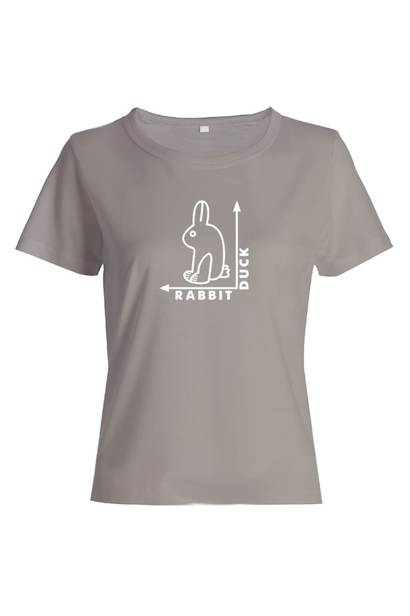 Футболка для женщины с забавным текстом "Rabbit Duck". Настало время шоппинг-террапии. Такая покупка способна поднять даже самое плохое настроение. В большой компании у вас велик шанс, что вы привлечете к себе внимание. Смешные футболки определенно им понравятся. Не забудьте рассказать дорогим друзьям, где вы раздобыли такое сокровище. Чем отличаются женские футболки от мужских? Они приталенные, а вырез увеличен. Одежда натуральна, 100% хлопок. Порадуйте такой футболкой лучшую подругу или сестру. Можете приобрести одинаковые - станьте роднее, почувствуйте себя близнецами, которых некоторые так любят одевать одинаково. Чтобы футболка подарила вам заряд счастья, выберите правильный размер. В нашем магазине футболки идут размер в размер. На сайте имеется таблица размеров. Уточните размер, ведь маленькая футболка вам точно не нужна, купите свободную. Пусть будет на размер больше, а не меньше.