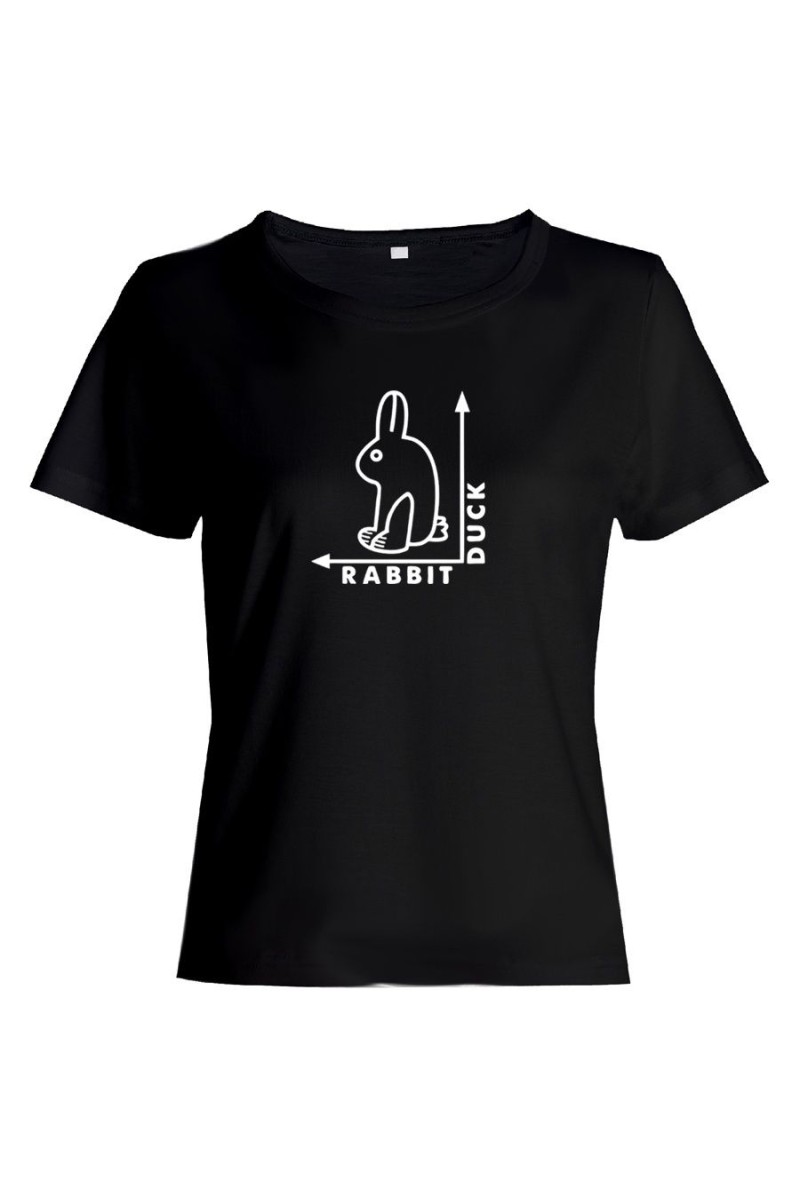 Футболка для женщины с забавным текстом "Rabbit Duck". Настало время шоппинг-террапии. Такая покупка способна поднять даже самое плохое настроение. В большой компании у вас велик шанс, что вы привлечете к себе внимание. Смешные футболки определенно им понравятся. Не забудьте рассказать дорогим друзьям, где вы раздобыли такое сокровище. Чем отличаются женские футболки от мужских? Они приталенные, а вырез увеличен. Одежда натуральна, 100% хлопок. Порадуйте такой футболкой лучшую подругу или сестру. Можете приобрести одинаковые - станьте роднее, почувствуйте себя близнецами, которых некоторые так любят одевать одинаково. Чтобы футболка подарила вам заряд счастья, выберите правильный размер. В нашем магазине футболки идут размер в размер. На сайте имеется таблица размеров. Уточните размер, ведь маленькая футболка вам точно не нужна, купите свободную. Пусть будет на размер больше, а не меньше.