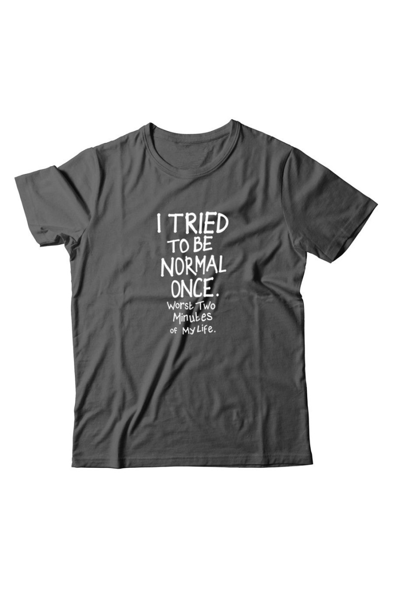 Футболка для мужчины с прикольным принтом "I tried to be normal once". Зачем же быть таким как все? Новая футболка не только порадует вас, но и значительно поднимет настроение. Также она может стать отличным подарком, особенно для ребенка. Ведь дети просто обожают все яркое, интересное, забавное. Это ведь прекрасный подарок на день рождения - практичный, радующий глаз, так еще и оригинальный. Интернет-магазин Wildberries предлагает огромный выбор необычных, качественных футболок. Футболки с прикольными принтами на любой вкус. Ее состав - чистый хлопок. На сайте вы сможете найти футболку для себя, папы, сына, друга. Главное не прогадайте с размером. Ну, а если вы покупаете футболку в подарок, то как быть? Можно спросить, но присутствует риск, что вы проболтаетесь и испортите сюрприз. Лучше возьмите на размер больше. В такую вы уж точно влезете. Свободные футболки - такие стильные.