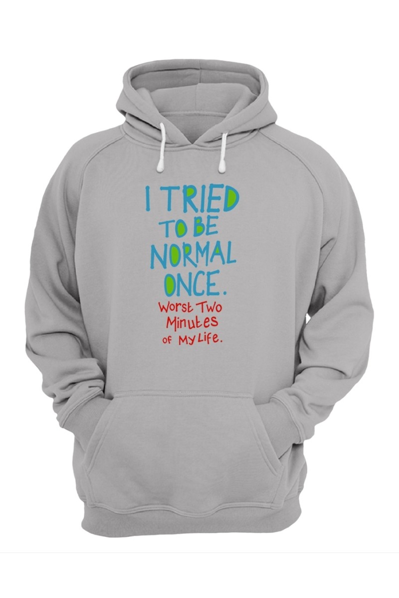 Худи для представительницы женского пола с забавным принтом "I tried to be normal once". Свитшот и худи - одно и то же? Нет, от свитшота этот тип одежды отличает наличие капюшона и скрытые карманы, которые находятся сбоку. Удобная, теплая одежда для прохладных летних вечеров. Наш сайт поможет вам найти худи своей мечты. Также худи может стать оригинальным подарком для кого-то из ваших близких. Состав: 100% хлопок. Кофты с длинными руками не только клевые, но еще изготовлены из экологически чистого материала. Говорим сразу, что худи идут размер в размер. Идеально, если вы знаете размер, но есть такие случаи, что размер узнать нельзя. Например, когда планируете эту кофту подарить, а сюрприз не хочется испортить. Не переживайте, просто возьмите свободное худи. Это комфортно для получателя, а для вас безопасно - вы не будете постоянно думать: подойдет или нет? Стильные люди предпочитают стильное худи.